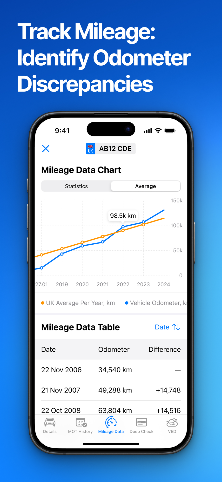 - Detect mileage discrepancies with a clear mileage tracking chart