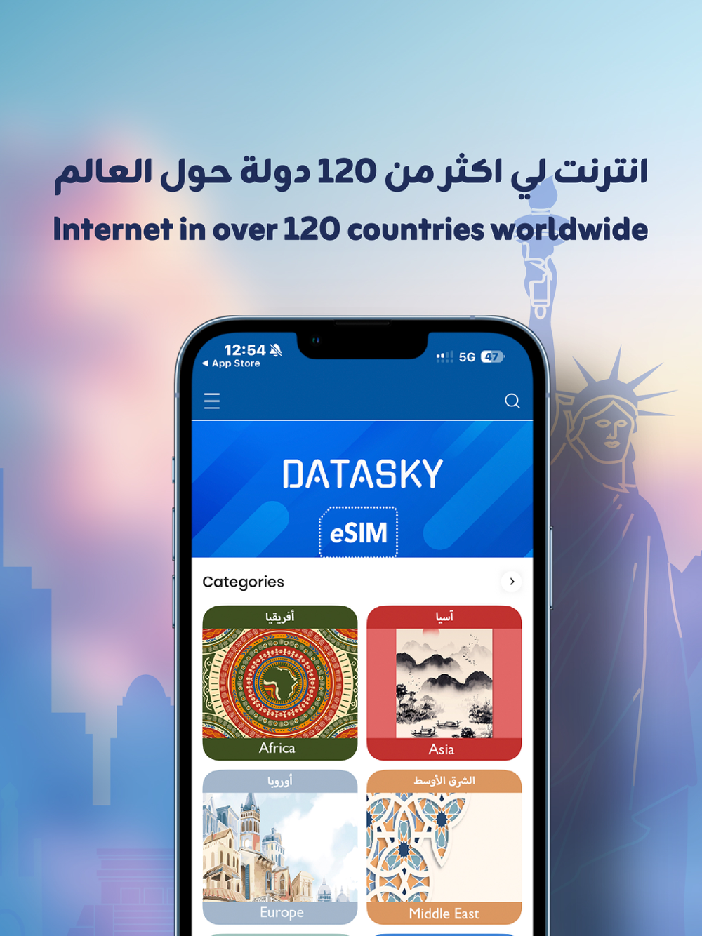 Datasky a company located in Kuwait specializing in selling eSIM data roaming packages for mobile phones, for use during travel or for local use. Offers diverse and suitable packages for everyone at reasonable prices. It also provides an easy way to pay and receive the order via email or WhatsApp message. Additionally, it offers a top-up service in case the data runs out.