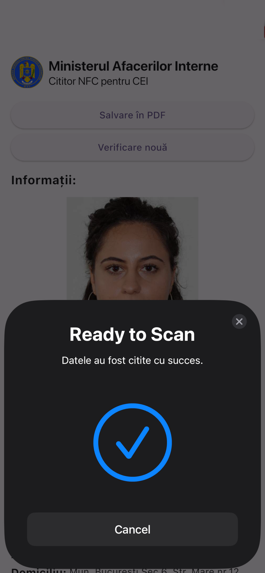 This application allows you to quickly and securely read data from the Electronic Identity Card (eID) using NFC technology. Simply enable NFC on your phone, enter CAN(6 digits), enter PIN(4 digits), place your CEI near the device, and the information will instantly appear on your screen.