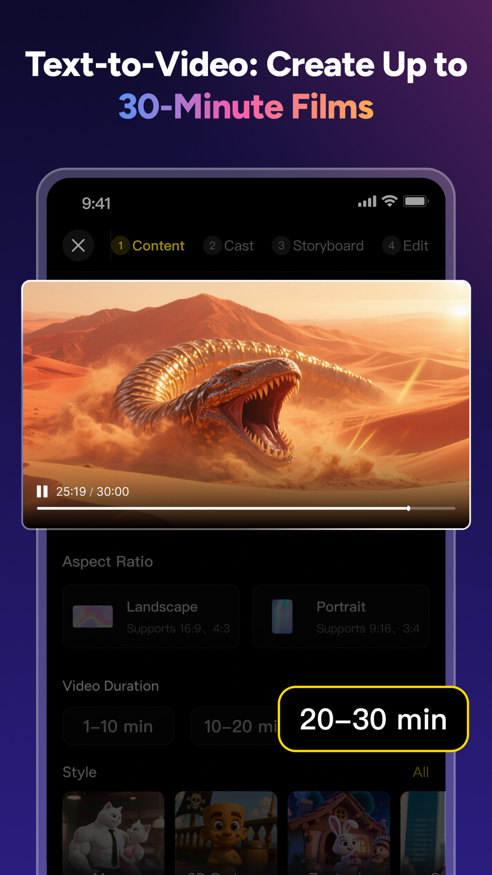 Supports: text to video, text to animation, novel to video, ai story video, ai storyboard.