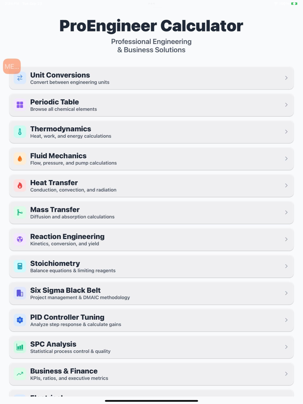 Engineered for professional engineers and engineering students alike, ProEngineering Calculator combines powerful tools and practical resources to tackle complex calculations and process management with ease. From chemical stoichiometry to electrical and flow mechanics, this app is built to optimize accuracy and efficiency in all your engineering tasks.