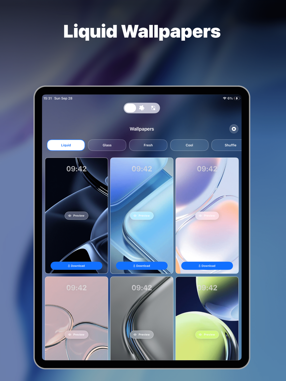 Liquid Glass bukan hanya gaya visual, melainkan gaya hidup. Menggabungkan nuansa futuristik dengan estetika elegan, membantu Anda menemukan kembali keindahan perangkat Anda. Minimalis atau personalisasi, kami menyediakan banyak pilihan.