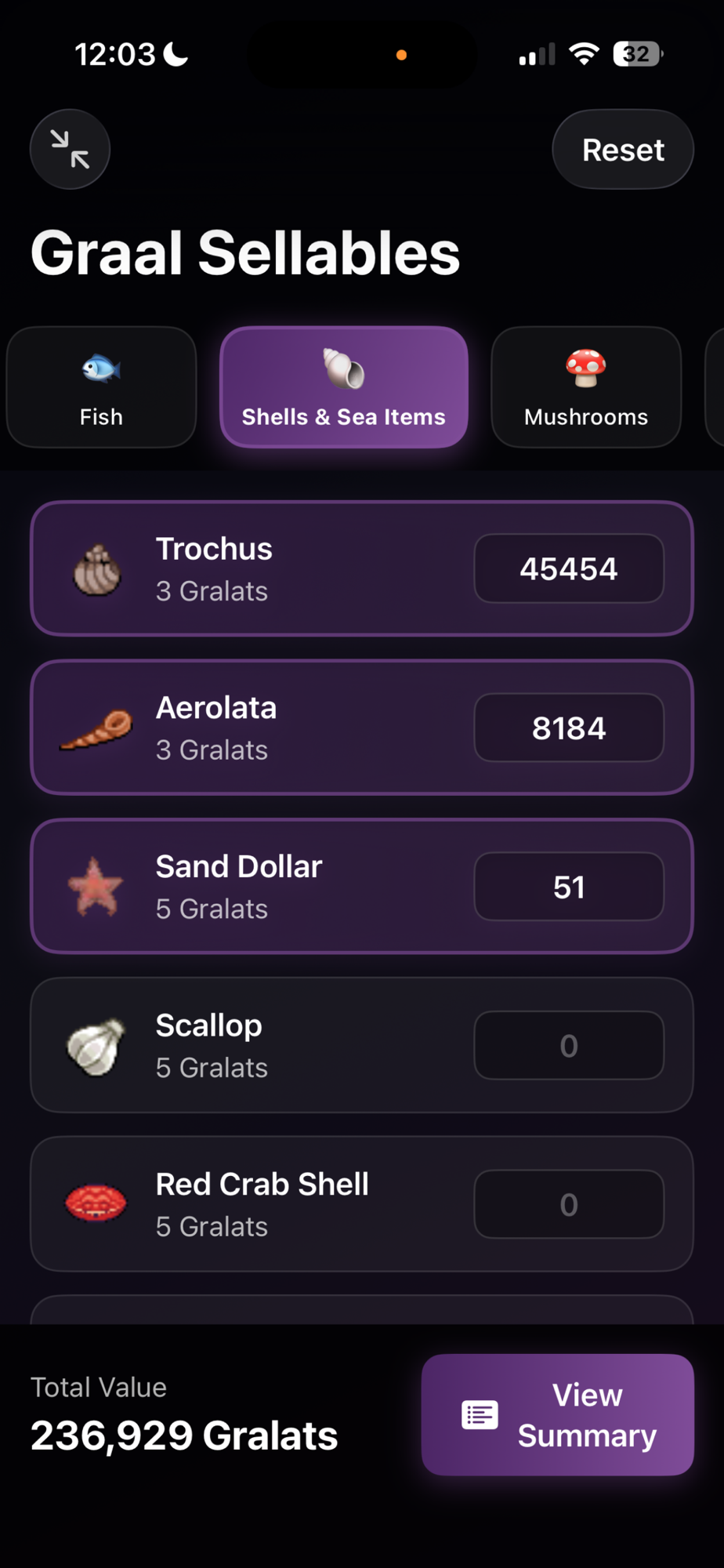 Whether you are cleaning your inventory, flipping market items, or farming shells, this app helps you instantly calculate the total value of your sellables—no more guessing or manual math.