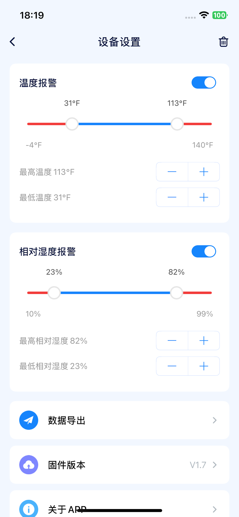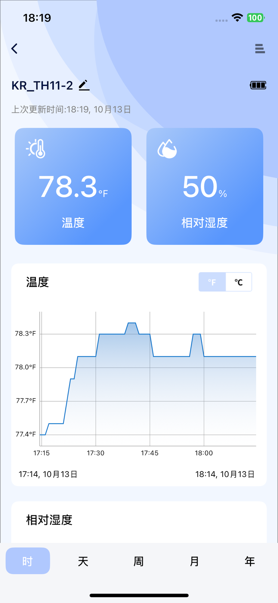 这是一款能实时获取设备温湿度变化的APP,可以显示温湿度、VPD、露点温度历史图表数据,以及温湿度报警功能。