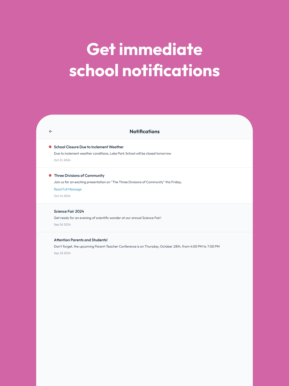 The Parrott Academy app provides parents, students, and faculty members with all the information they need in one place, conveniently accessed and explicitly formatted for consumption on their mobile devices.
