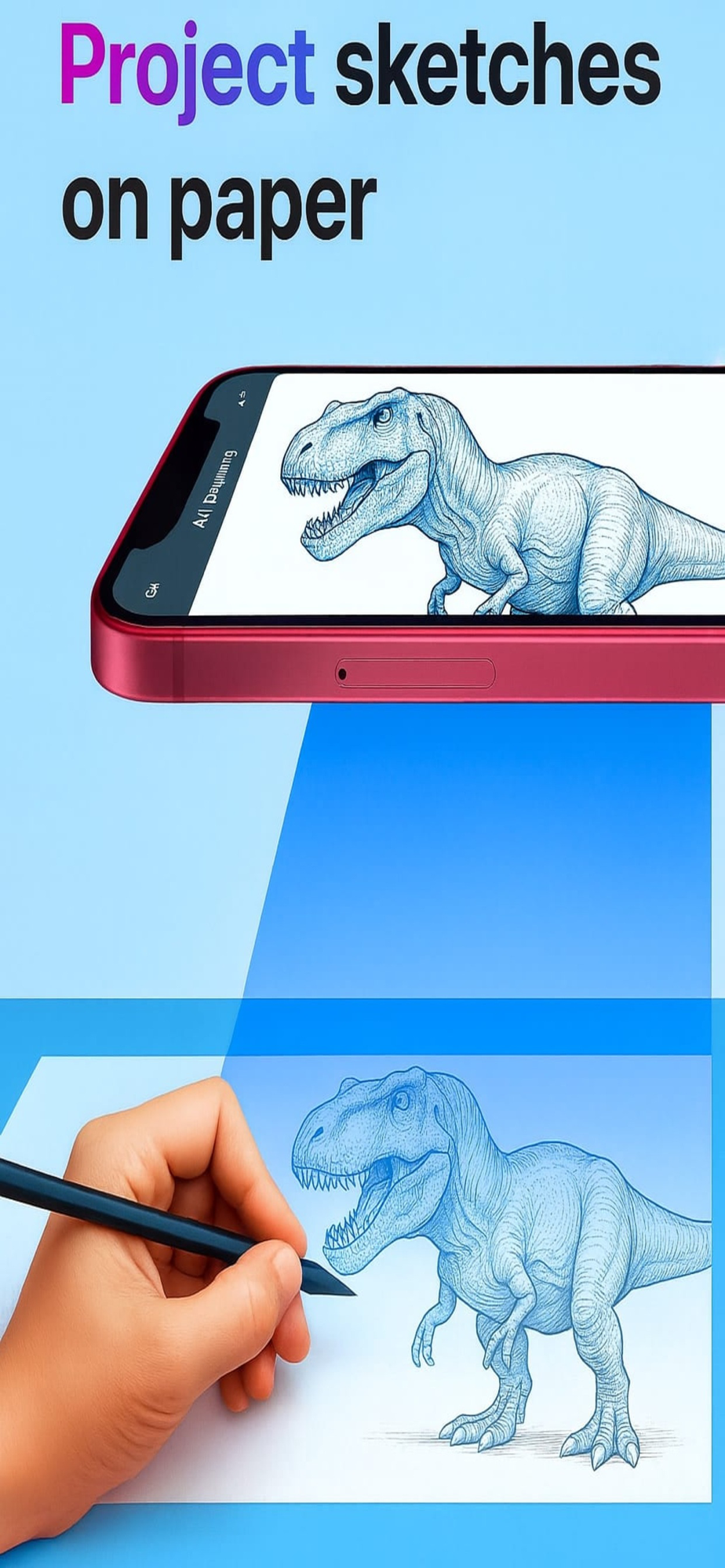 Bring your creativity to life with AR Drawing, the ultimate app that helps you project, trace, and draw anything — from your favorite anime characters and magical mermaids to mighty dinosaurs, or even your own photos.