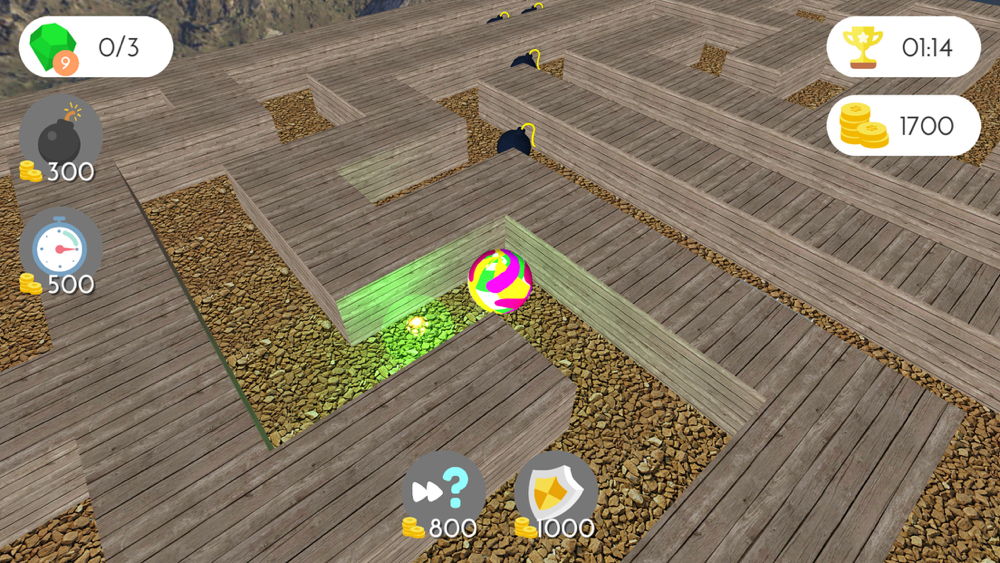 It is very easy to control the ball using virtual keys, you’ll learn it in no time. In the left bottom area, you can choose a viewing angle for the maze.