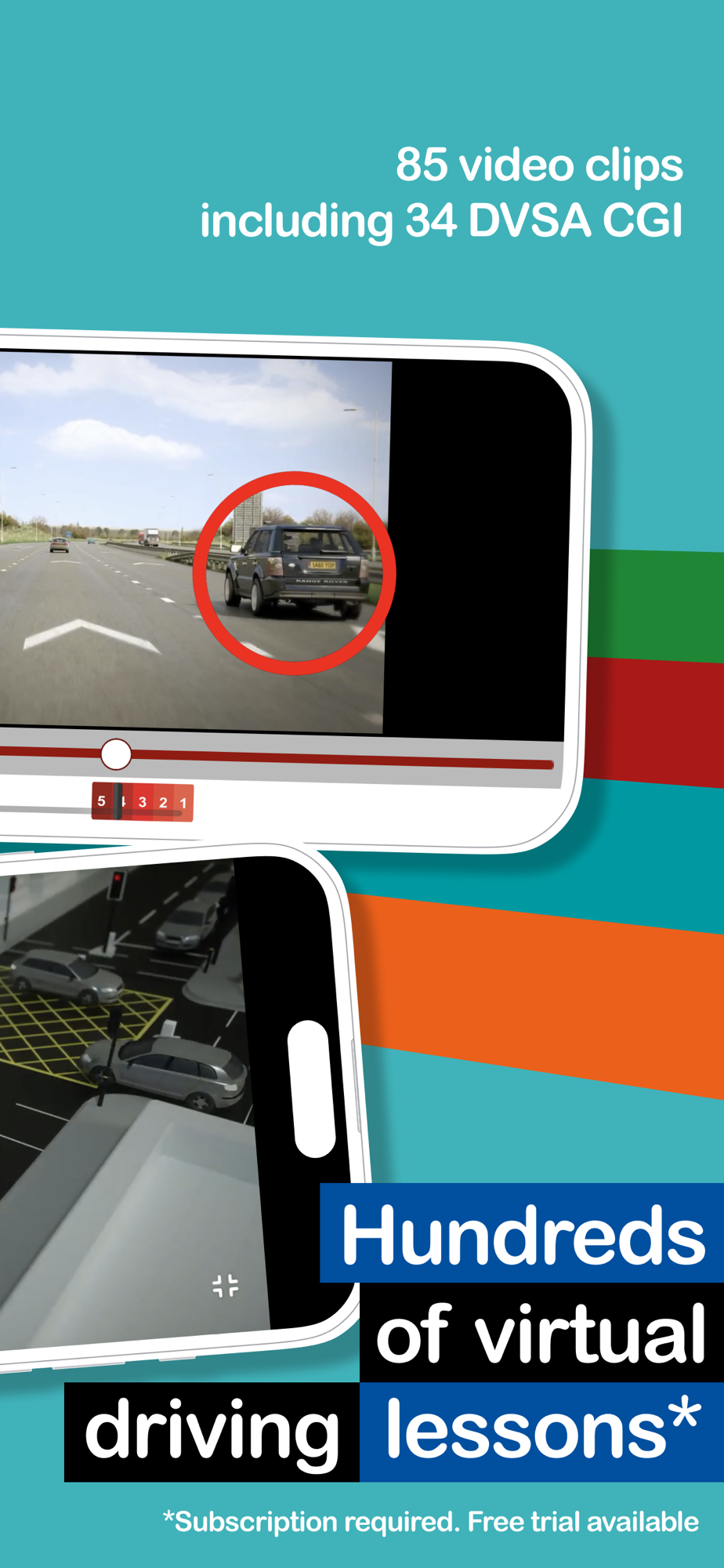 85 interactive video clips, including all 34 DVSA CGI clips covering bad weather and night time driving, with built-in cheat detection just like in the official test.