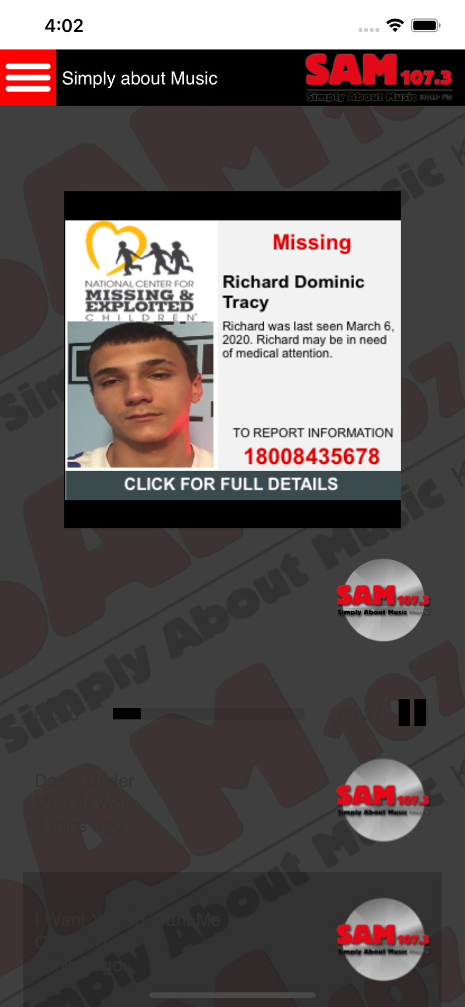 SAM 107.3 FM features Adult Hits music, and is Simply About Music. Variety is the key to this music format, with a larger playlist of music than most Adult Hits stations. We simulcast with KNUJ AM from 5a-8:30 am weekdays. Catch the Community Accent program at 8;35 am on weekdays as well. We cover 100 local sports events each year, plus Minnesota Vikings, and Minnesota Twins! But, its the music, and you never know what you will hear next on SAM 107.3, aka...KNUJ FM. Also, listen to us live on knuj.net, and on Facebook.
