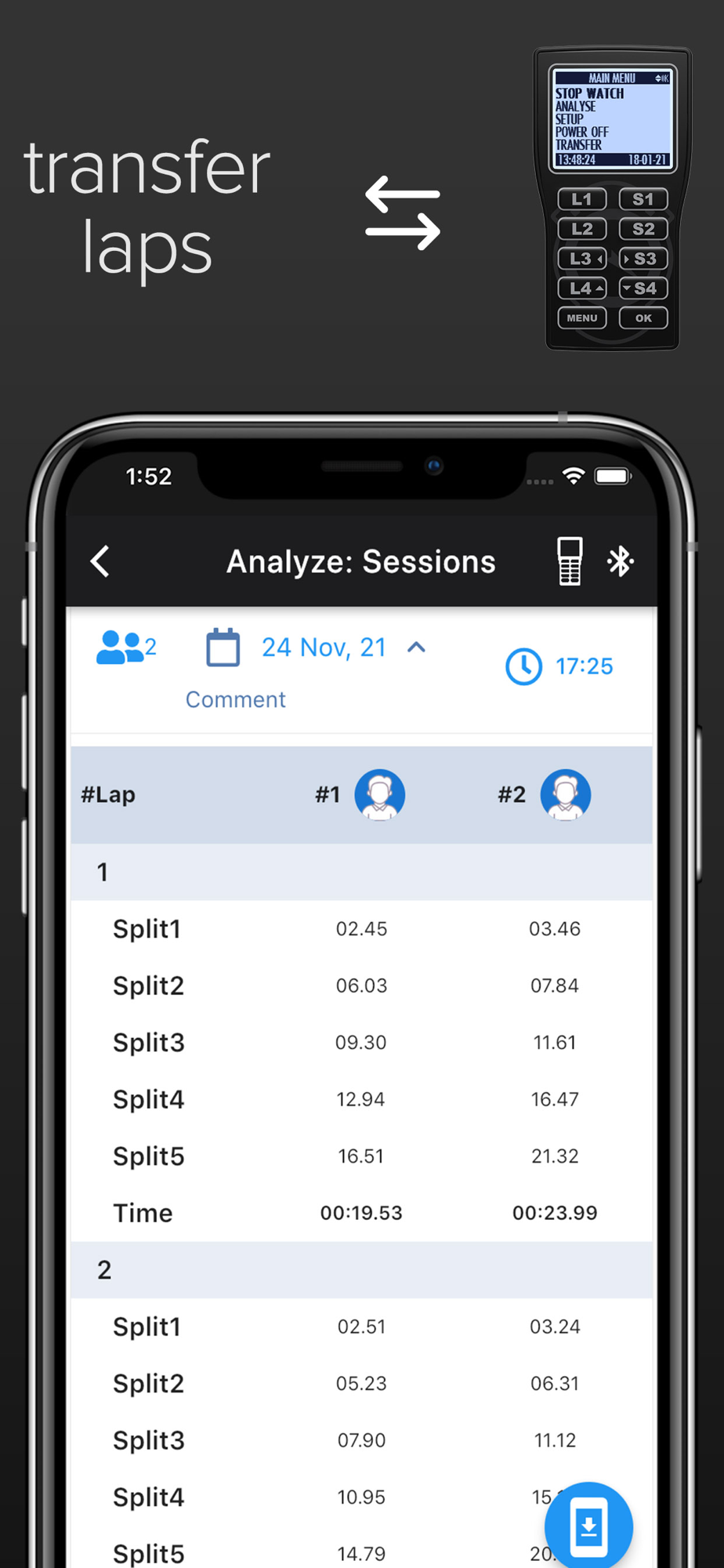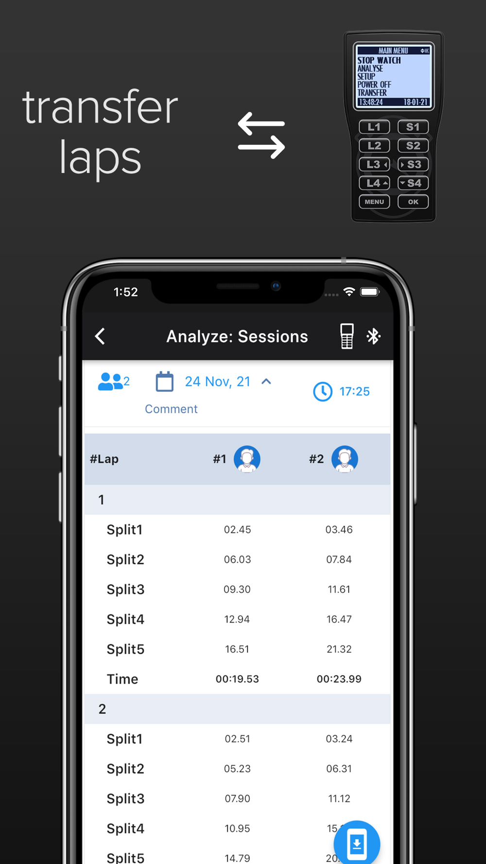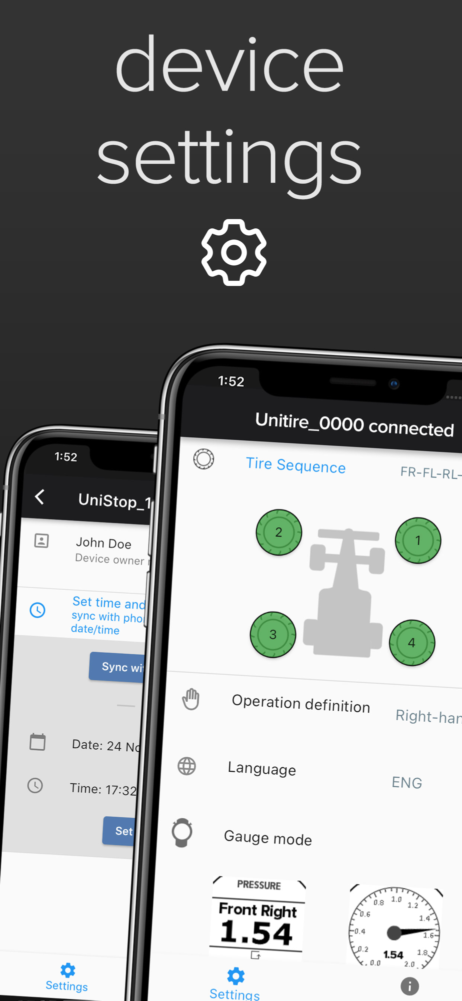 Download and analyze sessions from your UniStop V2 stopwatch and UniTire V2 pressure gauge.