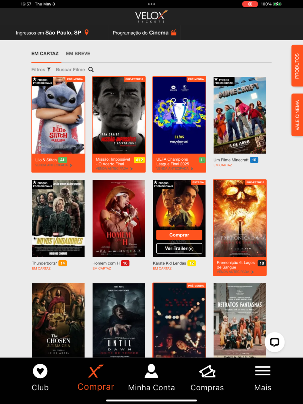 - Escolha a data, horário e sua poltrona antecipadamente;