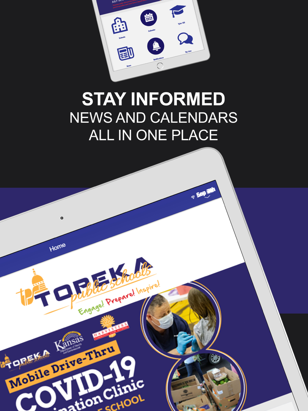With the Topeka Public Schools mobile app, your school district comes alive with the touch of a button. Easily navigate through current news and events or check out the latest updates with social media. Quickly retrieve contact information, sporting scores, lunch menus, and more! It’s your school district available at your fingertips.
