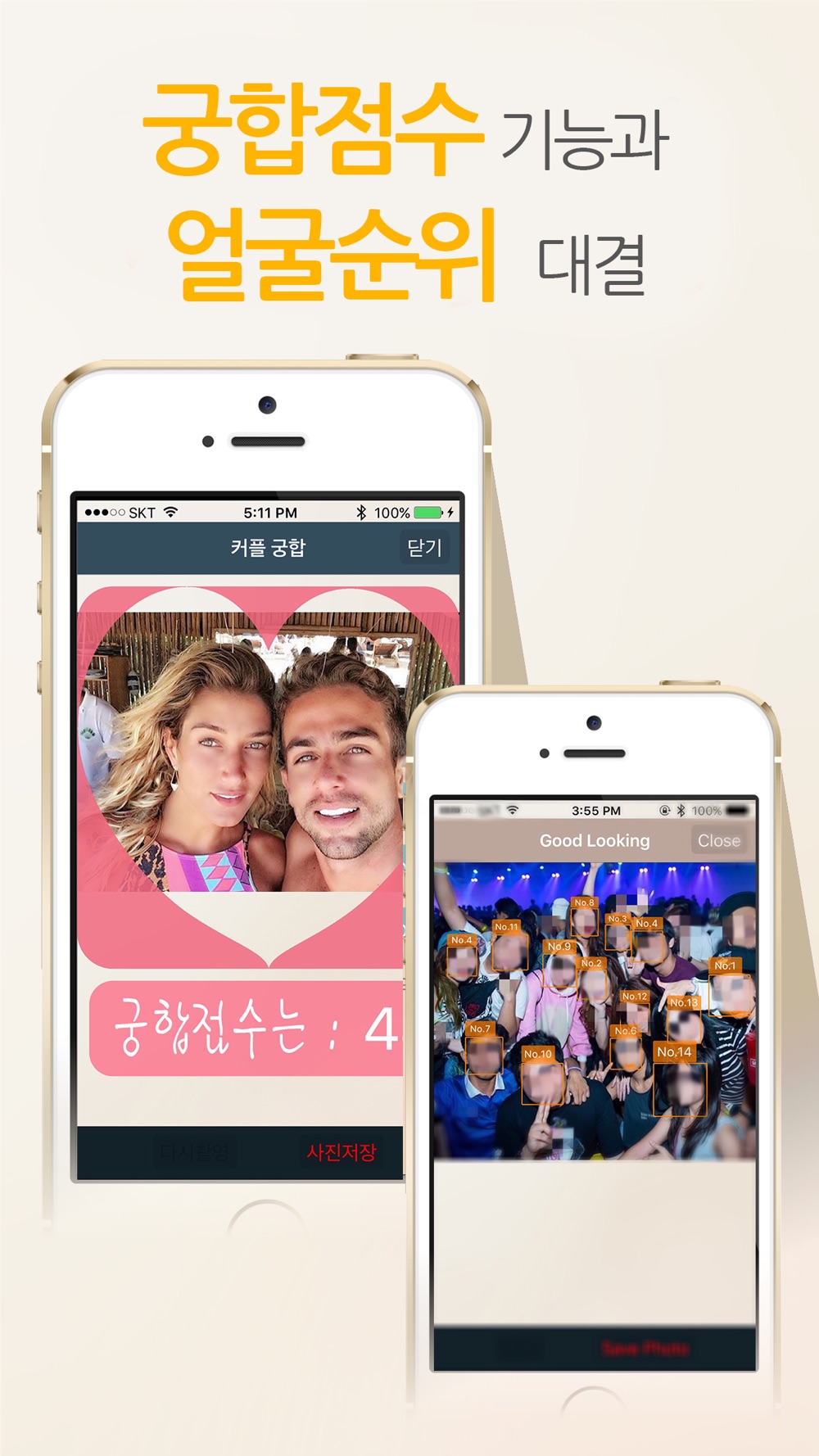 2. 얼굴인식 및 사진인식을 통한 연인과의 궁합 점수 확인