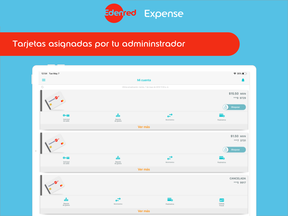 Sin importar si tu empresa es grande o pequea, Gestiona tus gastos en cualquier momento! Descubre todo lo que puedes hacer con Mi Ticket Expense: Si eres jefe, aprueba solicitudes de anticipos y reportes de gasto. Como usuario, puedes consultar saldos y movimientos, elaborar tu reporte de gastos con la ayuda del buzn inteligente y enviarlo fcil y rpido para aprobacin a tu jefe, protege tu tarjeta con el bloqueo temporal, solicita anticipo de saldo y adems cuentas con un cdigo seguro para e-commerce. Gracias por usar Mi ticket Expense! Trabajamos constantemente para mejorar las funcionalidades y el rendimiento. Conoces ms en www.empresarialedenred.com La tarjeta es proporcionada por tu empresa, debes ser un usuario existente de Empresarial Edenred.