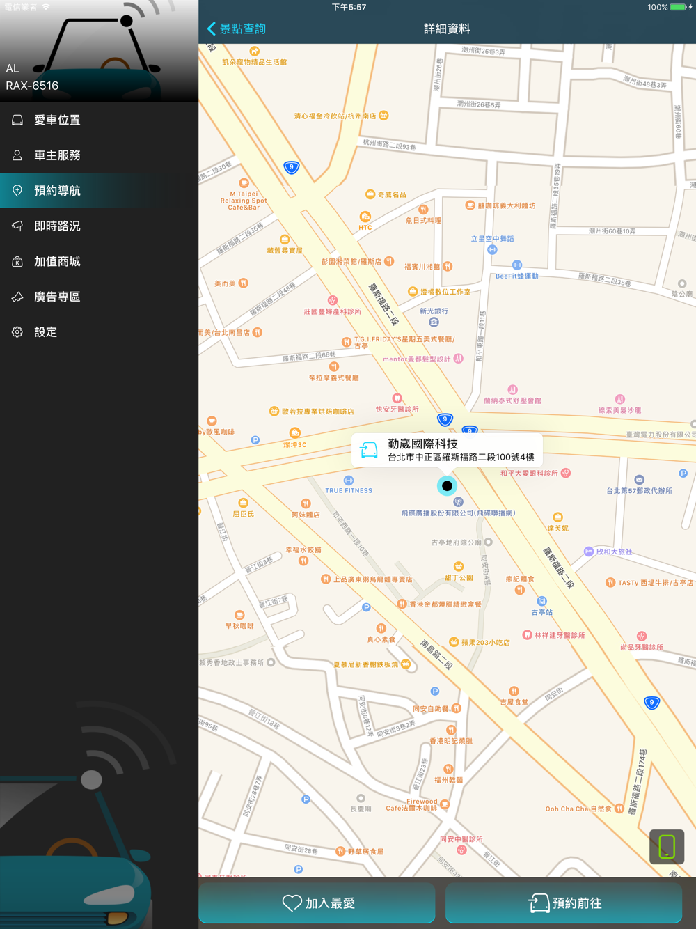 • 預約導航:預先設定導航位置,上車馬上出發