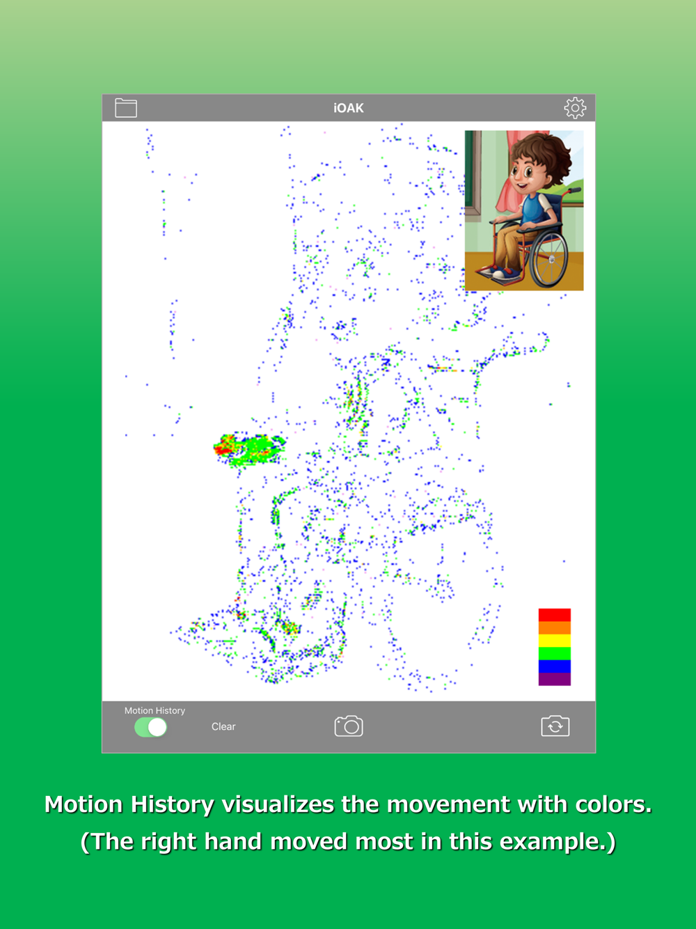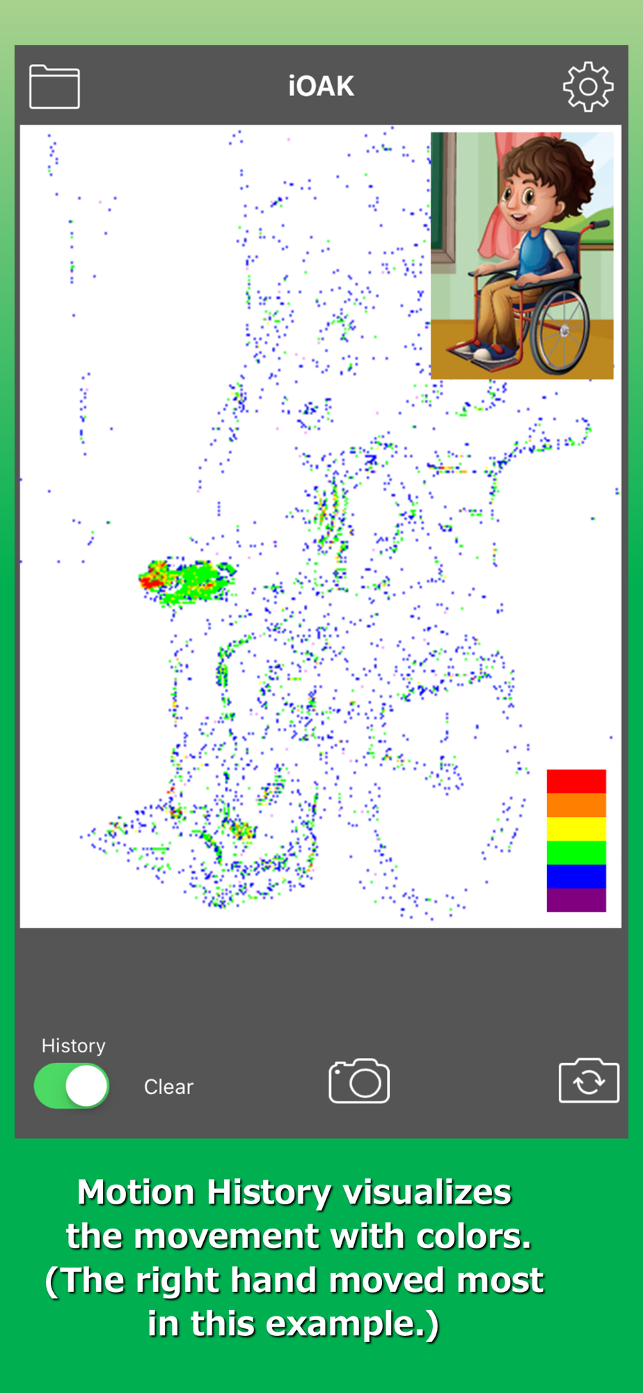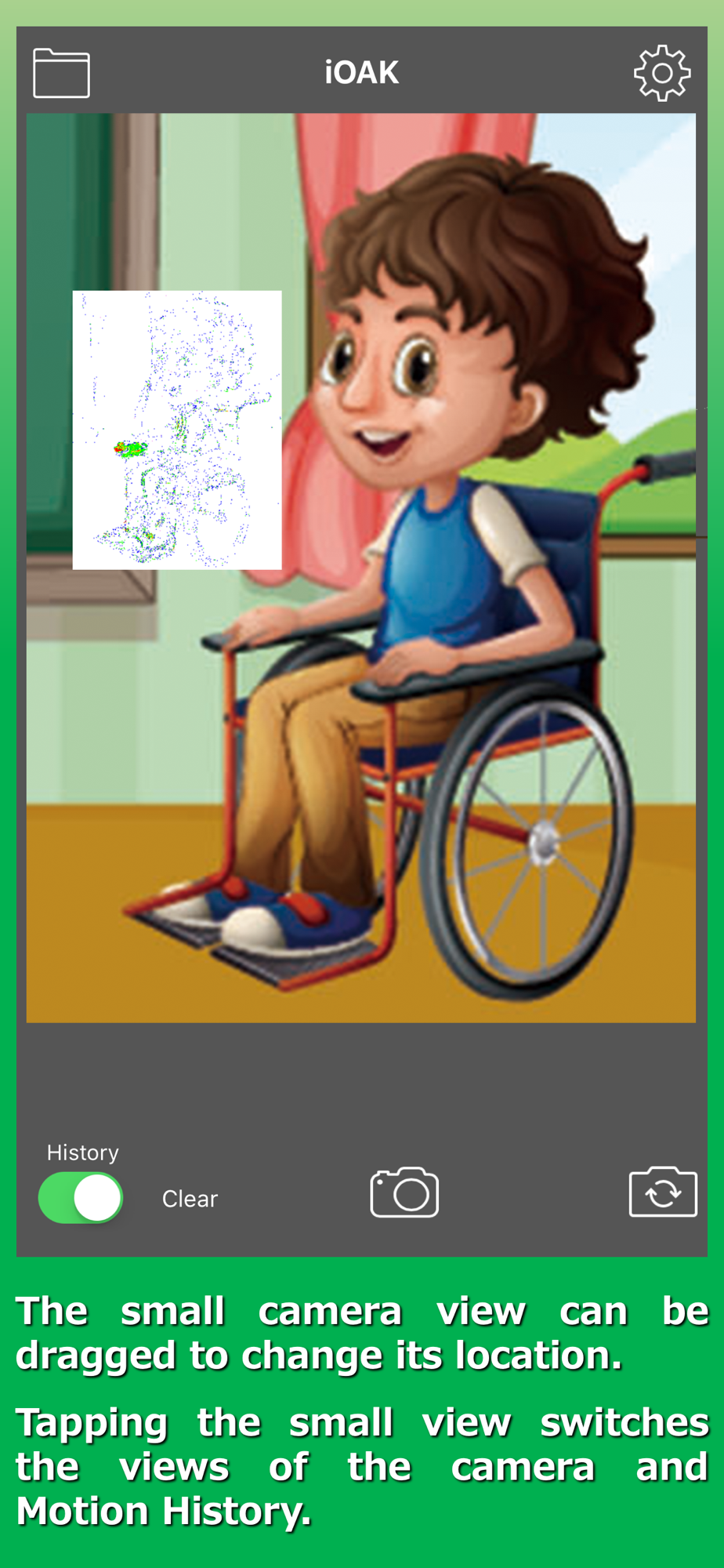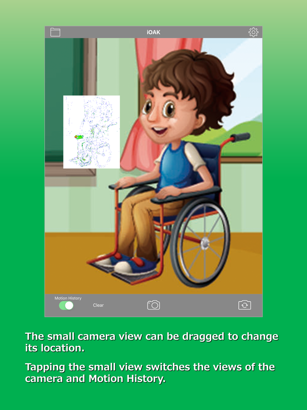 iOAK uses the camera to visualize the movement of the user and enables to control switches.