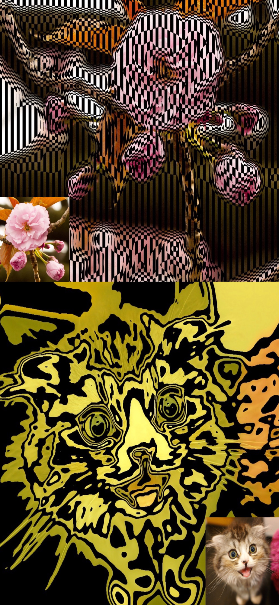 At first, a photo or video is converted to a two-tone image corresponding with its tone. Then the image is mixed with a template like stripe, check, radiation, fax, or dots.
