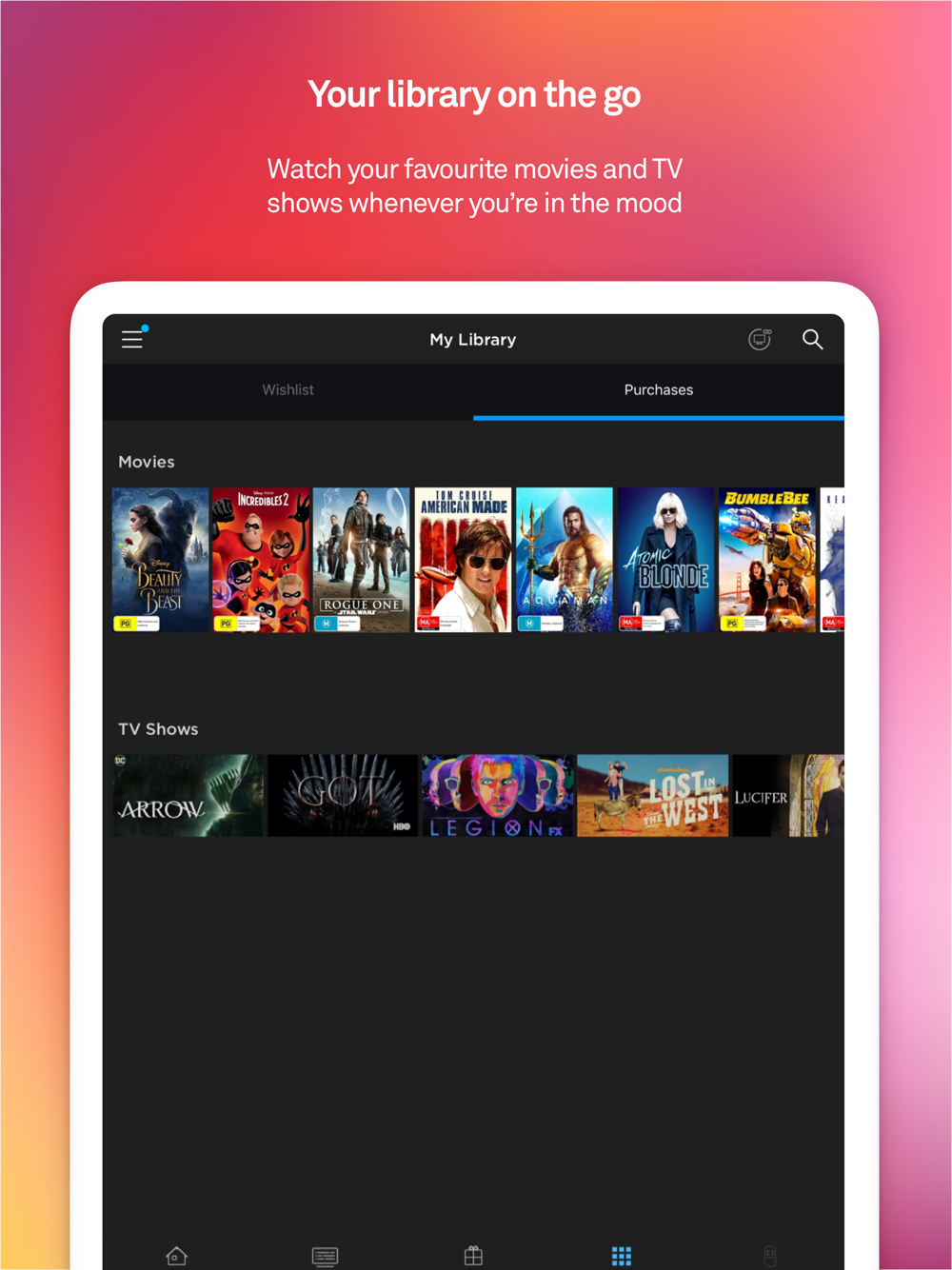 With Telstra TV app you can explore great entertainment from Telstra TV Box Office, Foxtel Now, Stan, HayU, DocPlay, AnimeLab and also search through the entire catalogues of ABC iview, SBS On Demand, 7Plus, 9Now and Tenplay. You’ll also find replays and exciting highlights from the latest AFL and Netball games.