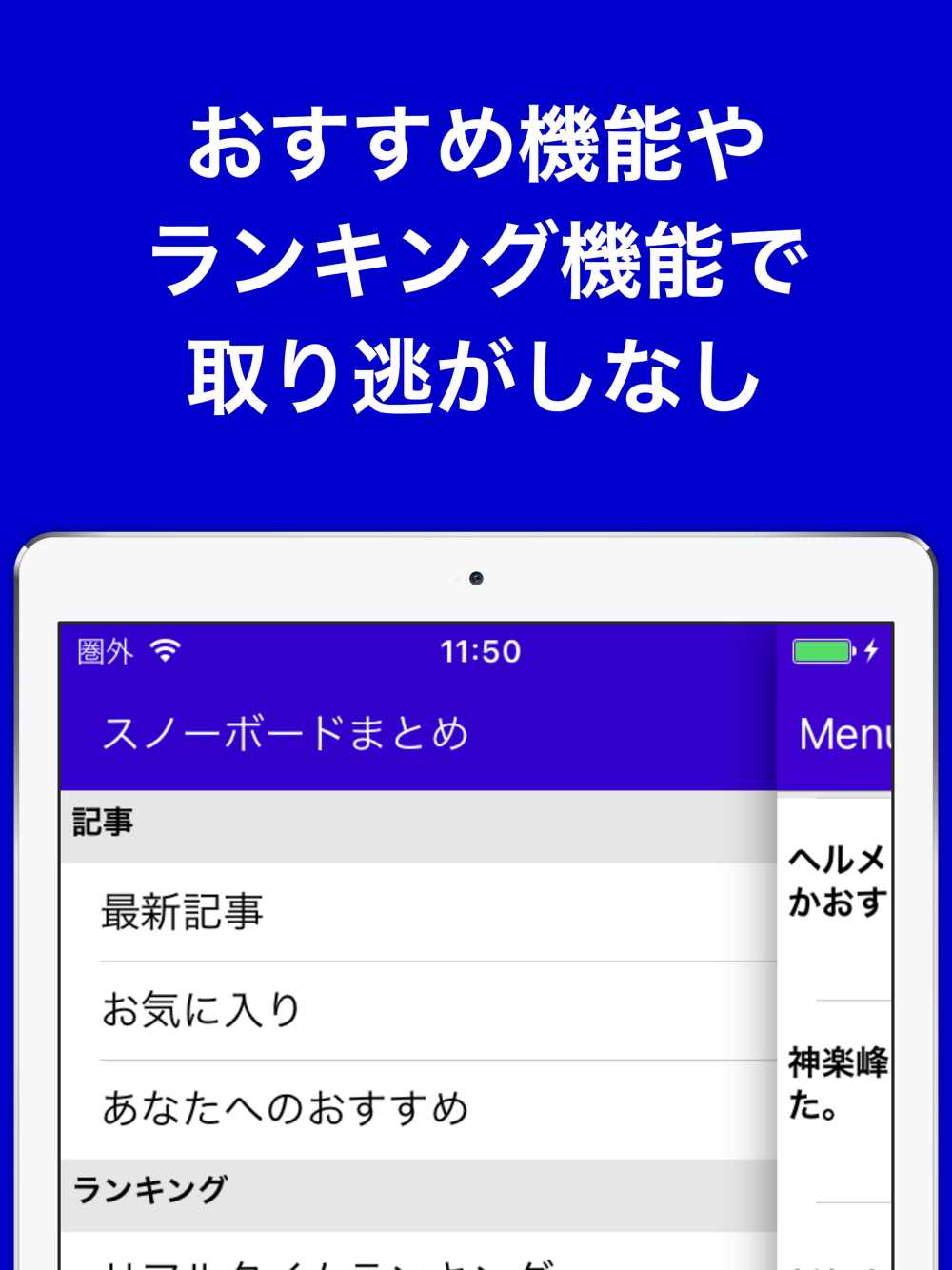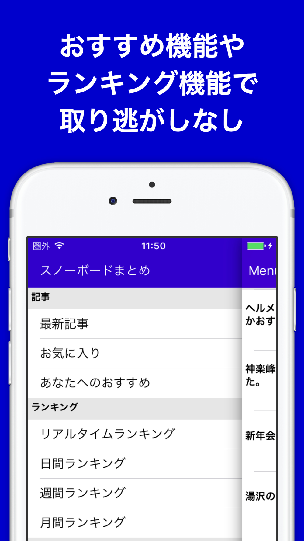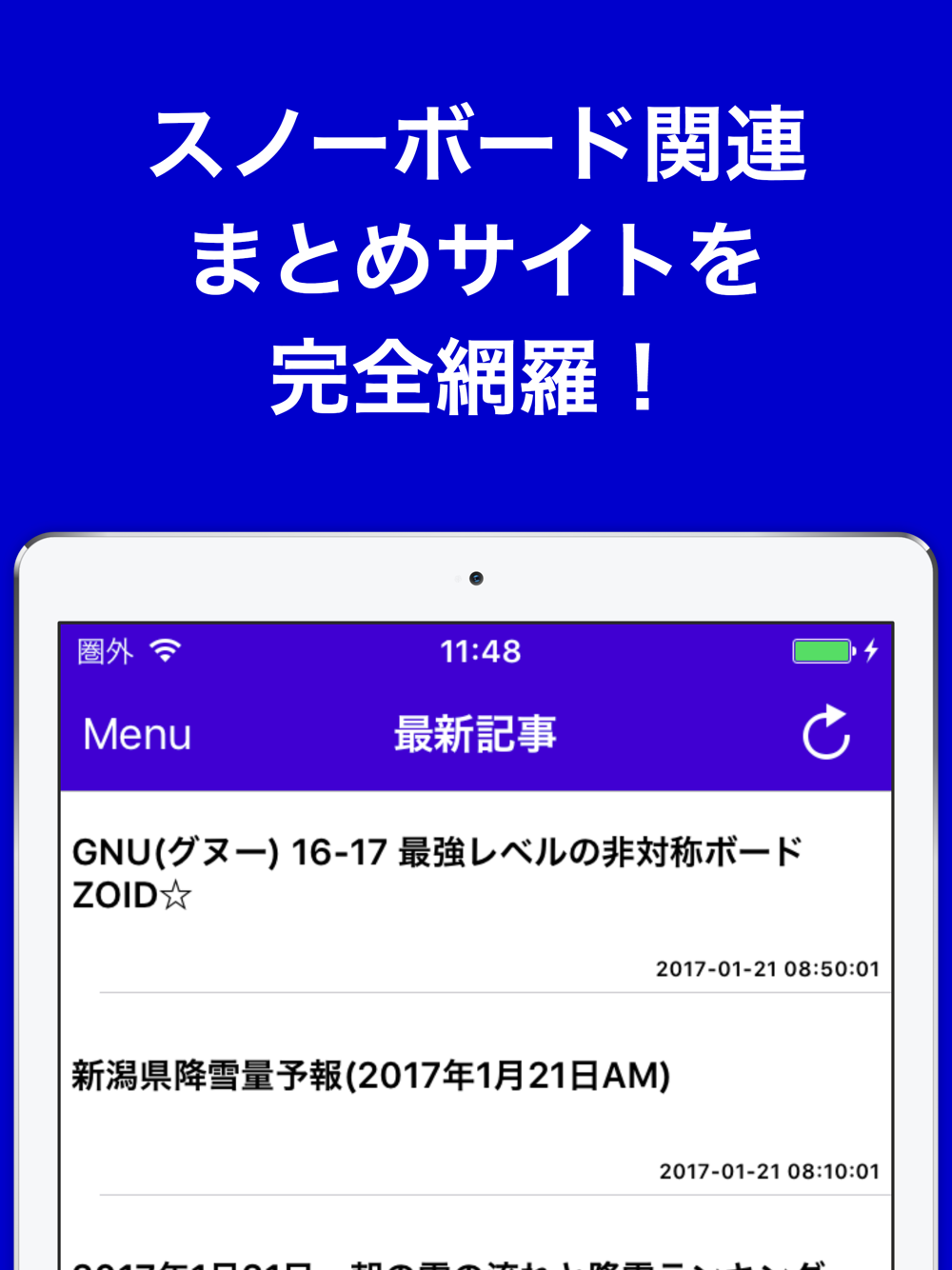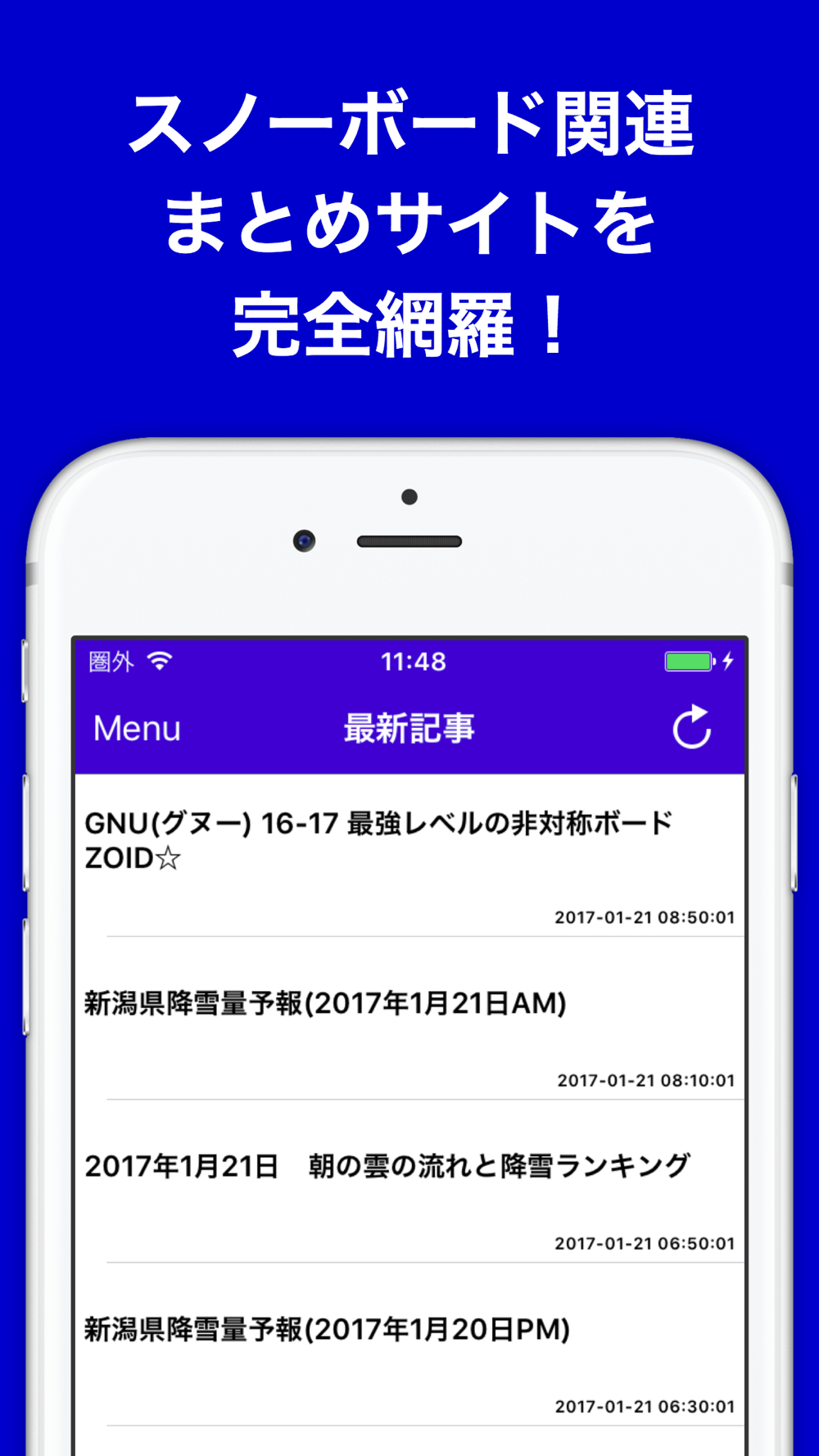 1タップの超簡単操作で最新のスノボニュースがサクサク閲覧可能!