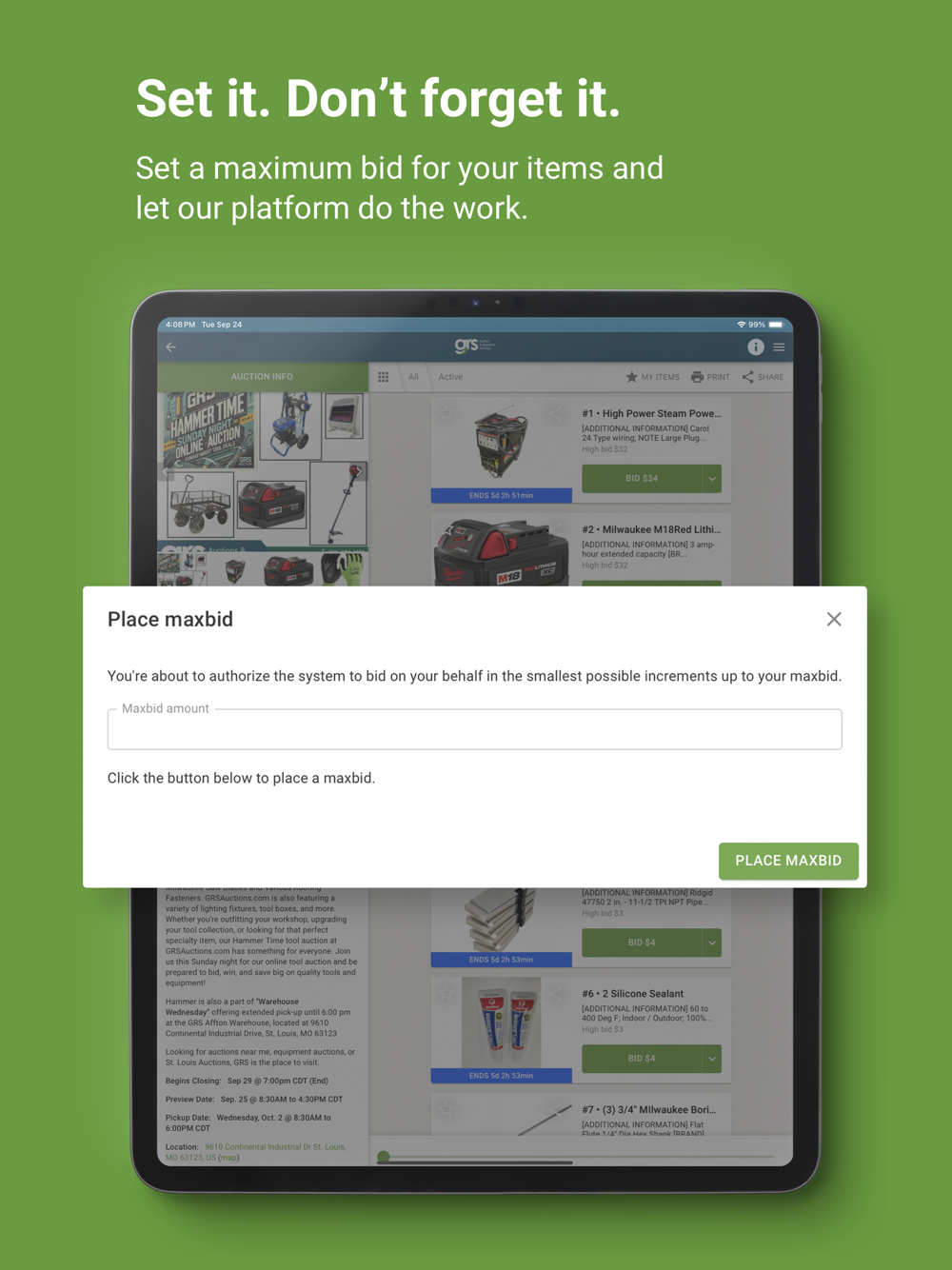 Download GRS Auctions now and start exploring auctions online with the thrill of live bidding and the convenience of your mobile device.