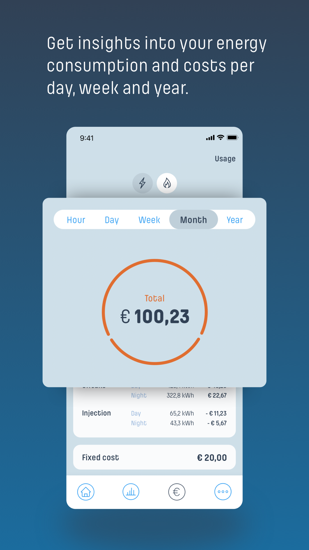 The app works in combination with the SmartBridge WiFi dongle for your smart meter. Or via a data hub connection (EDSN).