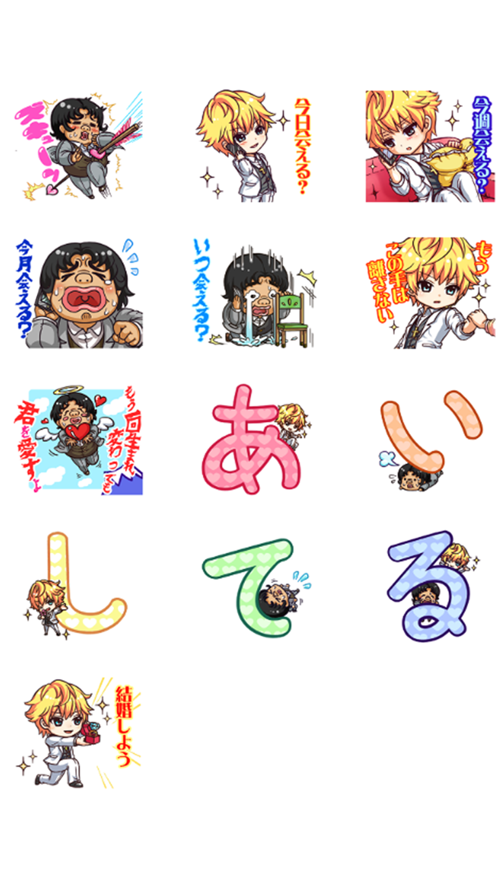 イケメン君とブサイク君が女性にひたすら愛を囁くスタンプです!恋人にも、友達同士でギャグで使うこともできますよ