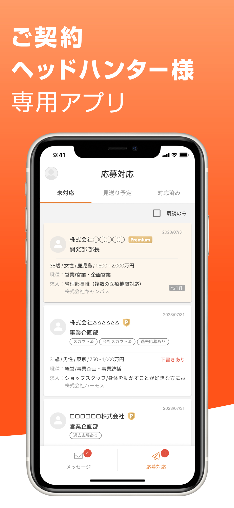 ハイクラス層向け転職サイト ビズリーチのヘッドハンター専用アプリです。