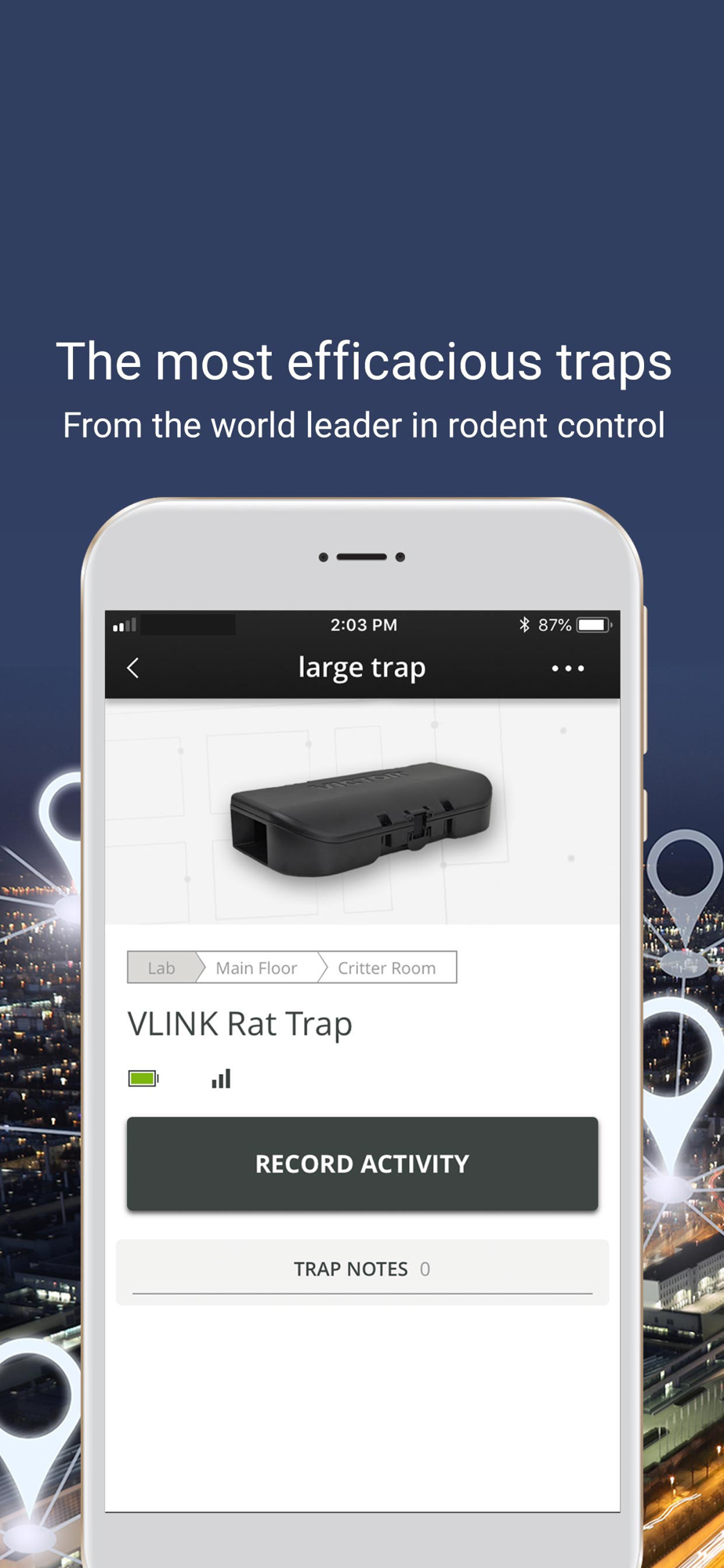 VLINK Mobile is the app you need for managing and servicing your VLINK-connected rodent control program. It is optimized to make on-site management of the system easy and intuitive. VLINK Mobile works with the following products: VLINK Power-Kill PRO Mouse Snap Trap (V420), VLINK Power-Kill PRO Rat Snap Trap (V430), VLINK Rat Tunnel Trap (V460), VLINK Mouse Tunnel Trap (V450).