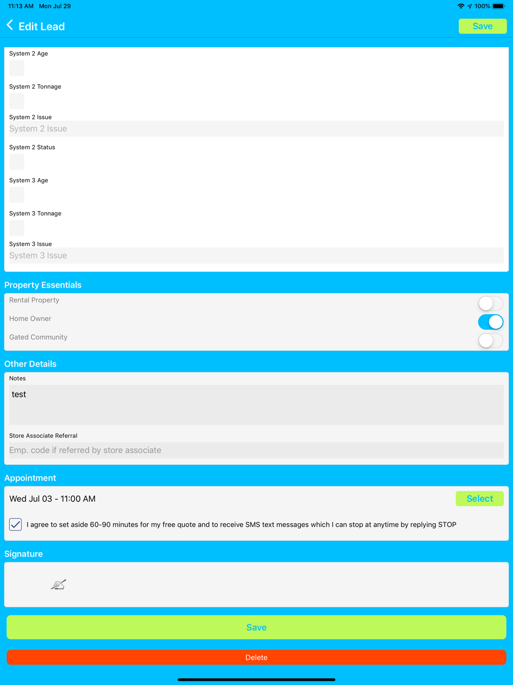 A mobile lead generation application for use by lead generators that helps them to quickly and efficiently collect pertinent details about a potential customer and forward those details to your sales team for further action. Ideal for lead generators working in big box stores selling HVAC, Fencing, Doors & Window and other related services. This tool provides