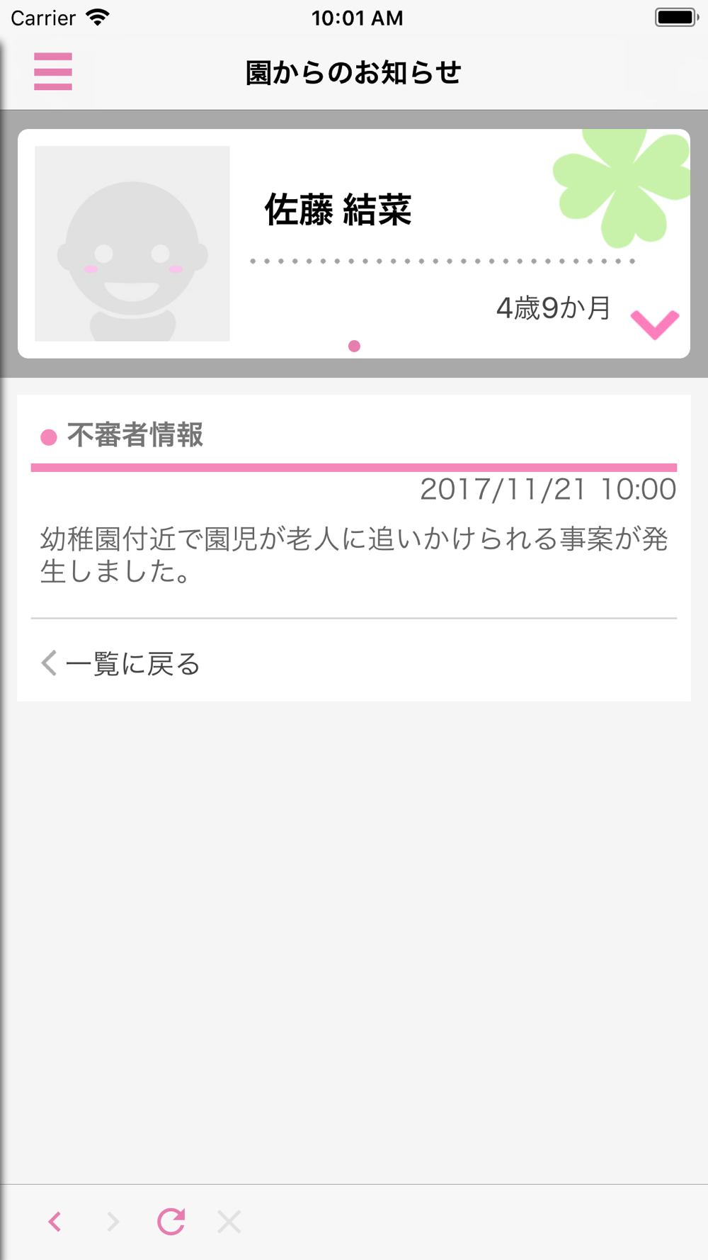 〇保育所から感染症の流行情報等のお知らせ配信に対応。