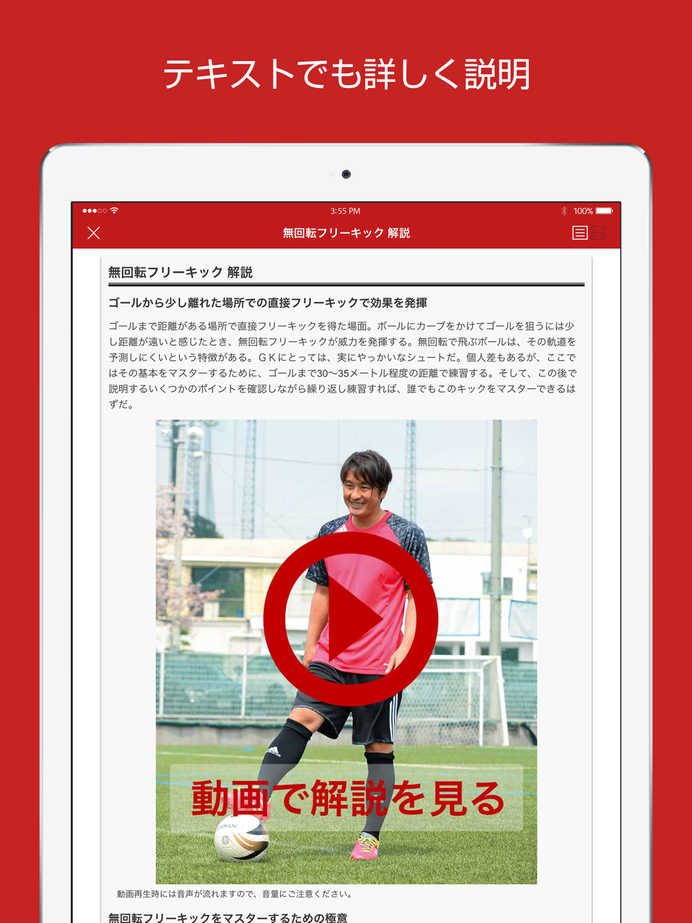 アプリならではのスロー再生や滑らかなコマ送り機能を利用して、じっくりと見直すことができますので、これまでYoutubeなどの動画ストリーミングサービスでは難しかった細かなテクニックの理解に効果的です。WiFi環境でスマホやタブレットにコンテンツをダウンロードしておけば、公園やグランドでも通信料がかからずに何度もコンテンツを再生することできますし、見なくなったコンテンツをスマホから削除すれば、メモリ容量も気になりません。
