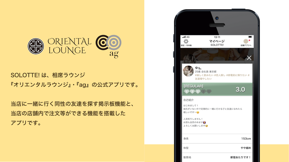 SOLOTTE!は、『オリエンタルラウンジ 』『ag』の公式アプリです。