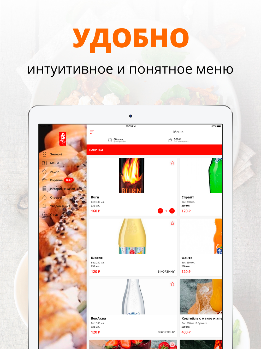 - История заказов. Смотрите, что и когда вы заказывали и заказывайте снова!