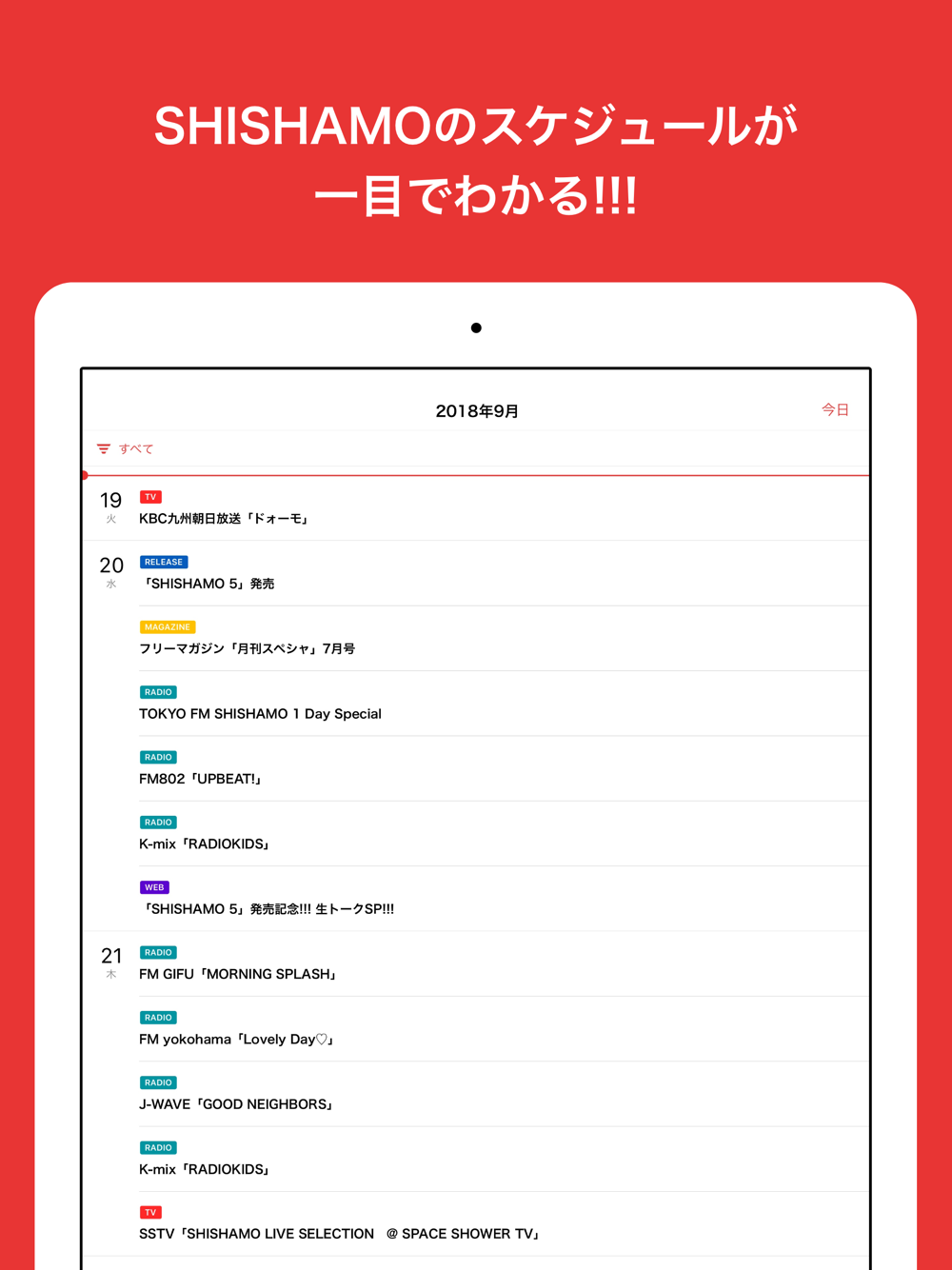 ライブやメディア出演などのスケジュールを完全網羅。