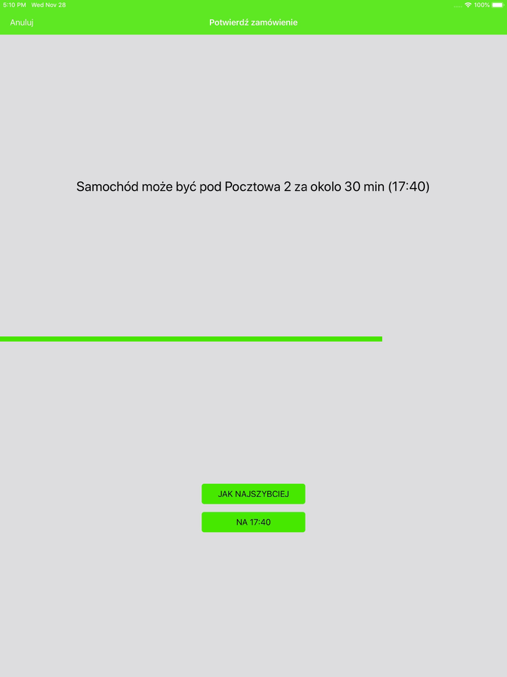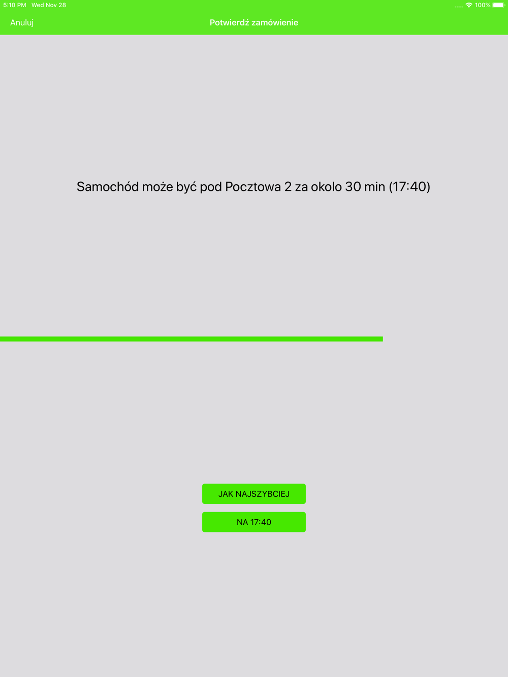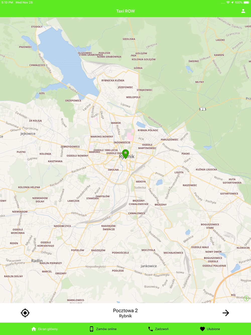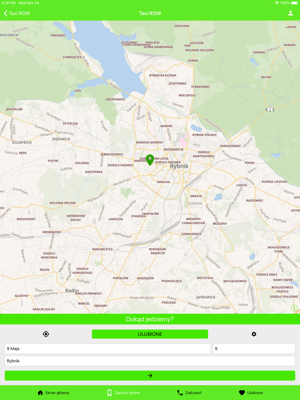 - obserwowania na mapie pozycji kierowcy (po złożeniu zamówienia pojawi się możliwość włączenia mapy, na której widać swoją pozycję oraz pozycję auta),