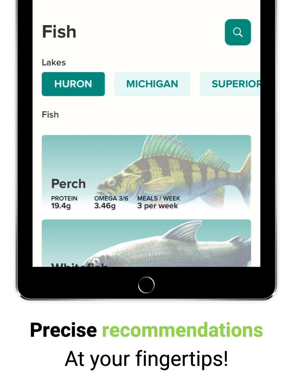The Gigiigoo app is designed to informing northern native populations about risks and benefits of consuming fish from Lake Huron, Lake Michigan, and Lake Superior.