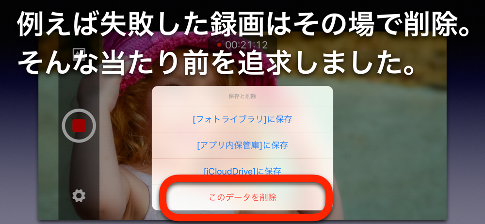 1秒でも長く録画し続ける無限カメラと、1秒でも素早く録画を開始するゼロカメラをよろしくお願い致します。