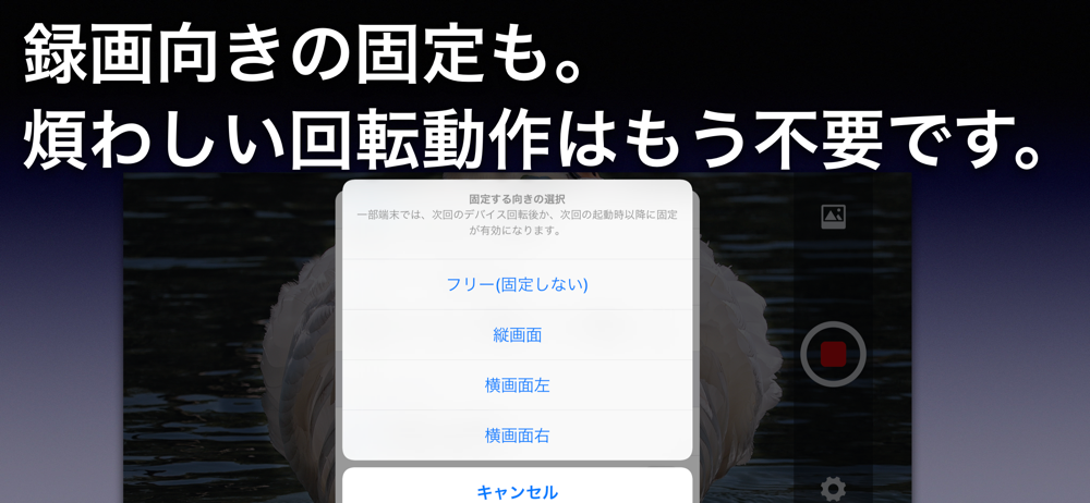 3.録画向きの固定が可能。端末の向きに関わらず、希望の向きで録画を開始。