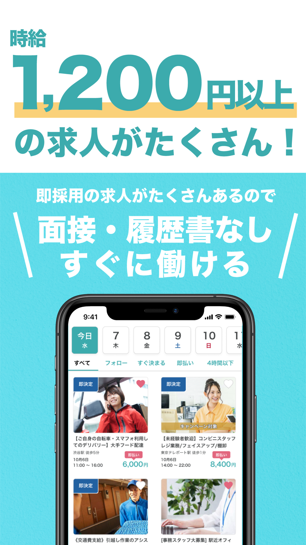 ・単発バイト・短期アルバイトをするのに履歴書を作る必要も、面接に行く必要もなし!
