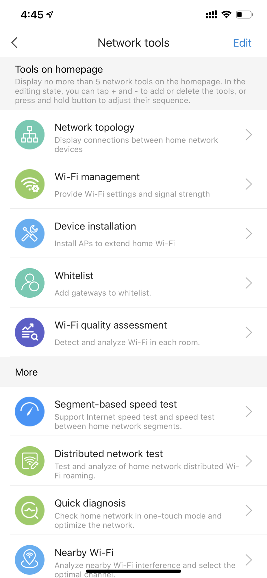 It supports functions such as smart gateway information query, smart gateway restarting, and Wi-Fi quality Assessment.