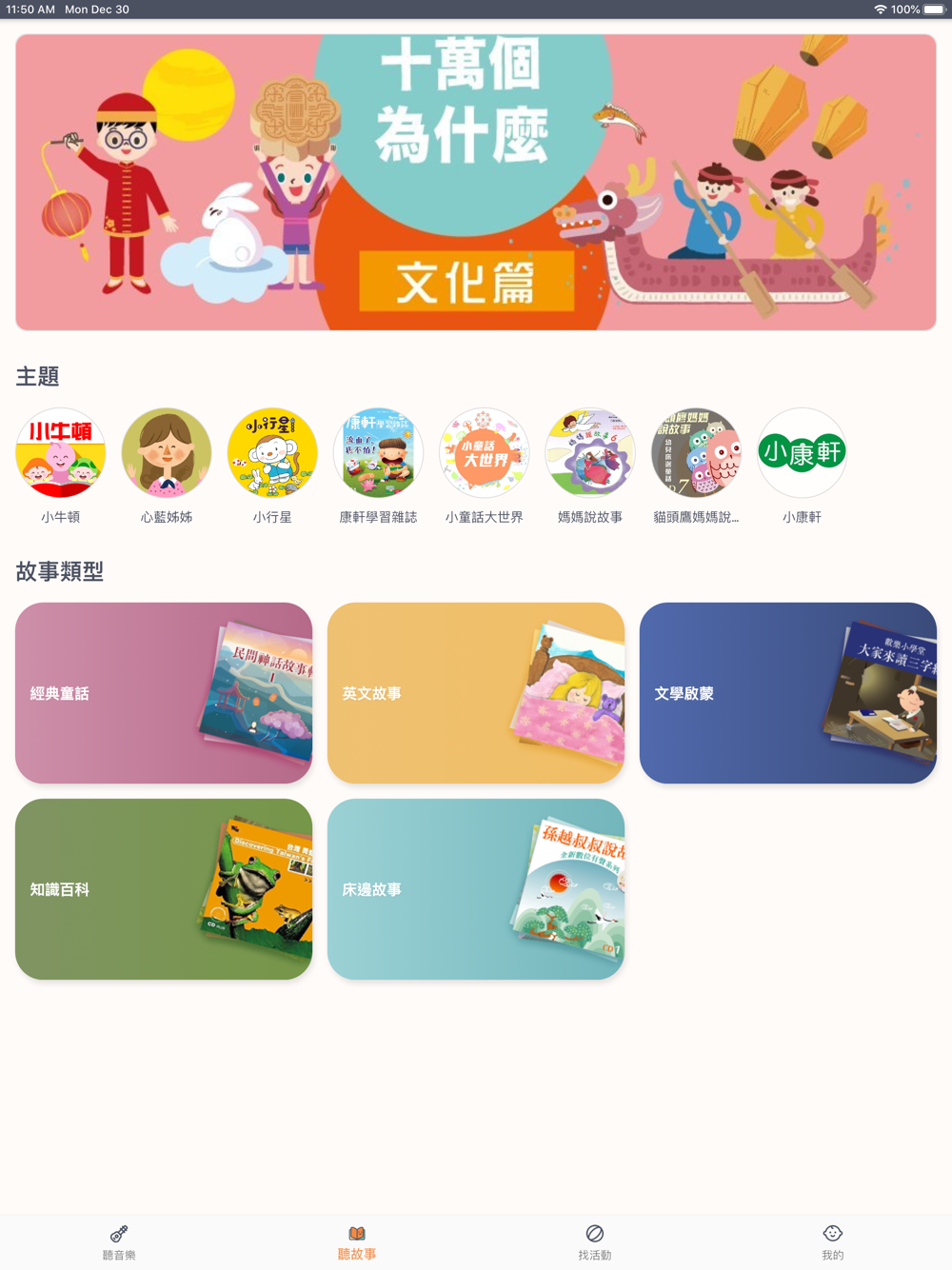 依類型探索孩子喜歡的經典童話故事、英文故事、啟蒙文學、知識百科.....,引人入勝的豐富故事內容滿足孩子的各種喜好。