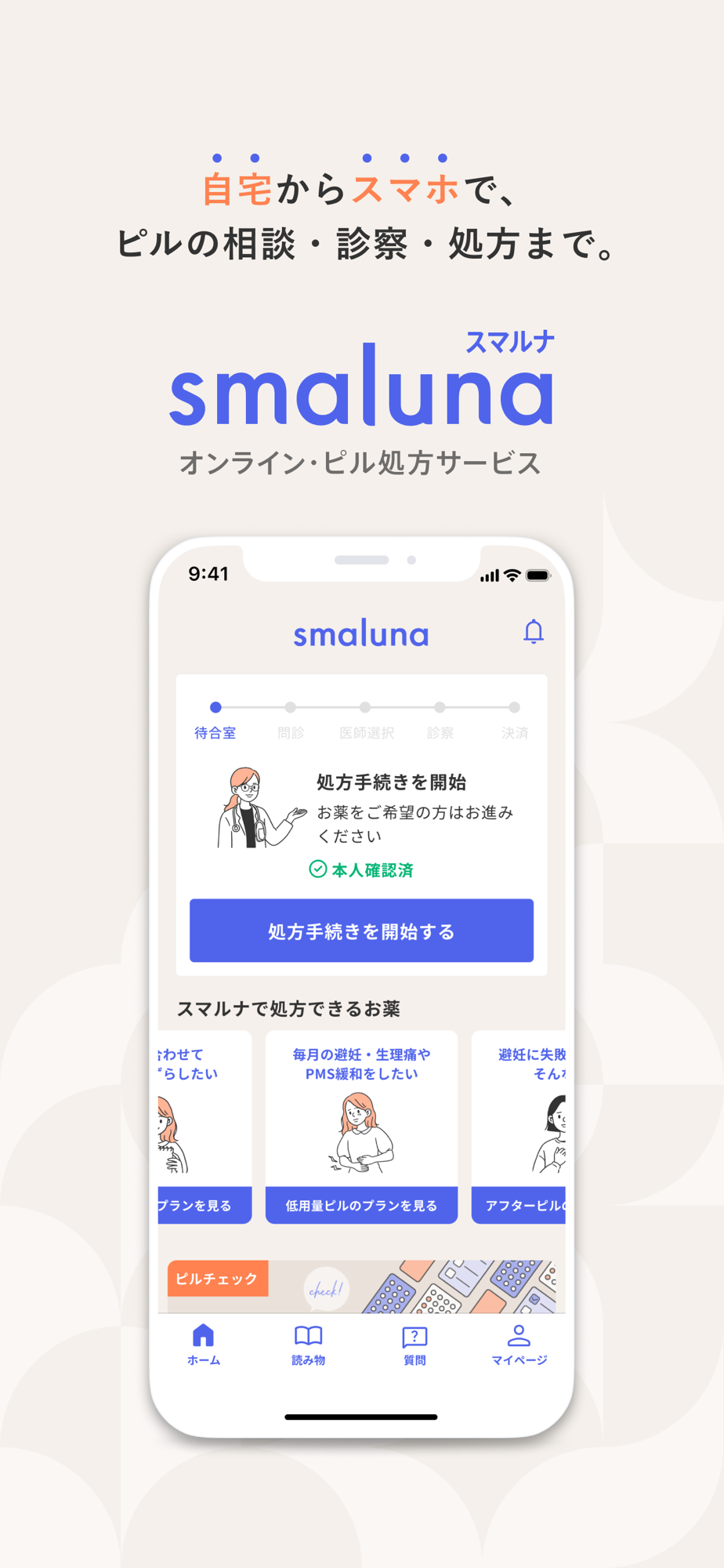スマルナは、ピルの相談から診察・処方までスマホでできるオンライン・ピル処方サービスです。ご自宅でも職場でも、いつでもどこからでも受診できるので、「近くに婦人科が無い」方や「婦人科での診察に抵抗がある」方、「日々の用事で忙しく通院する時間がない」という方にもおすすめです。