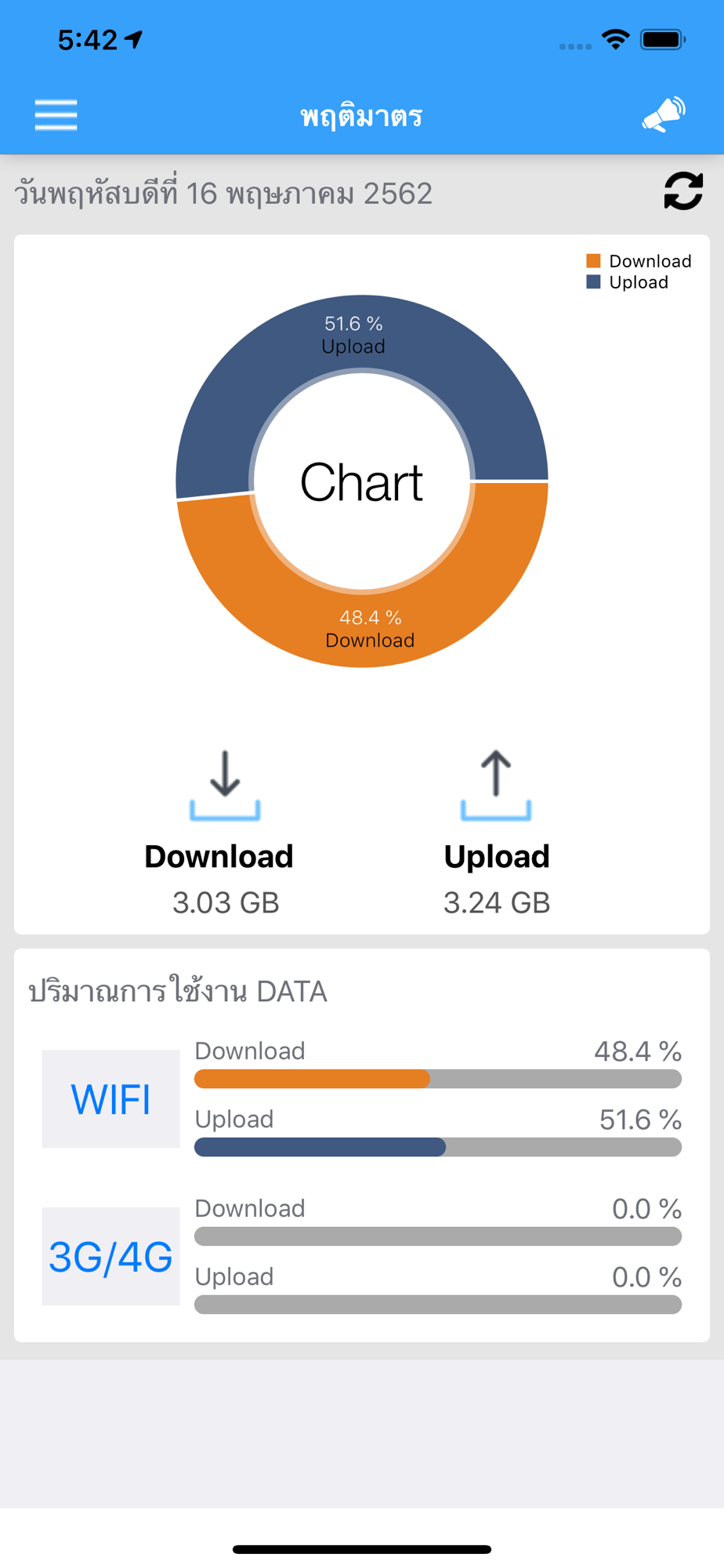 2. การแสดงผลปริมาณการดาวน์โหลดและอัปโหลดข้อมูล