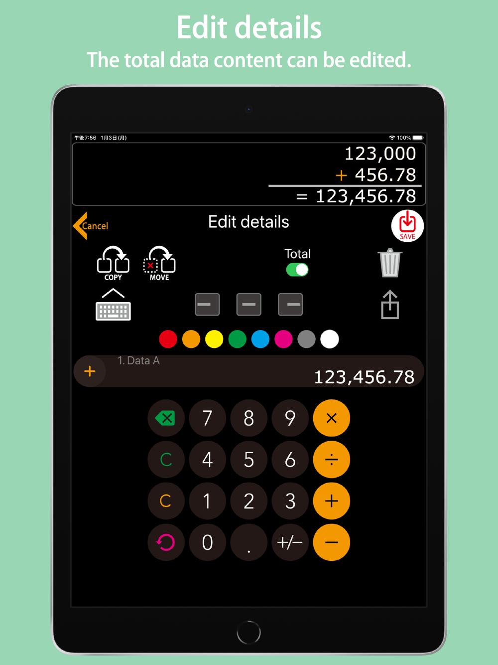 ( 3 ) Edit all data - ( Name edit , Copy ALL , Move ALL , Delete ALL , Clear ZERO ALL , SORT , Total-ON/OFF , Export )