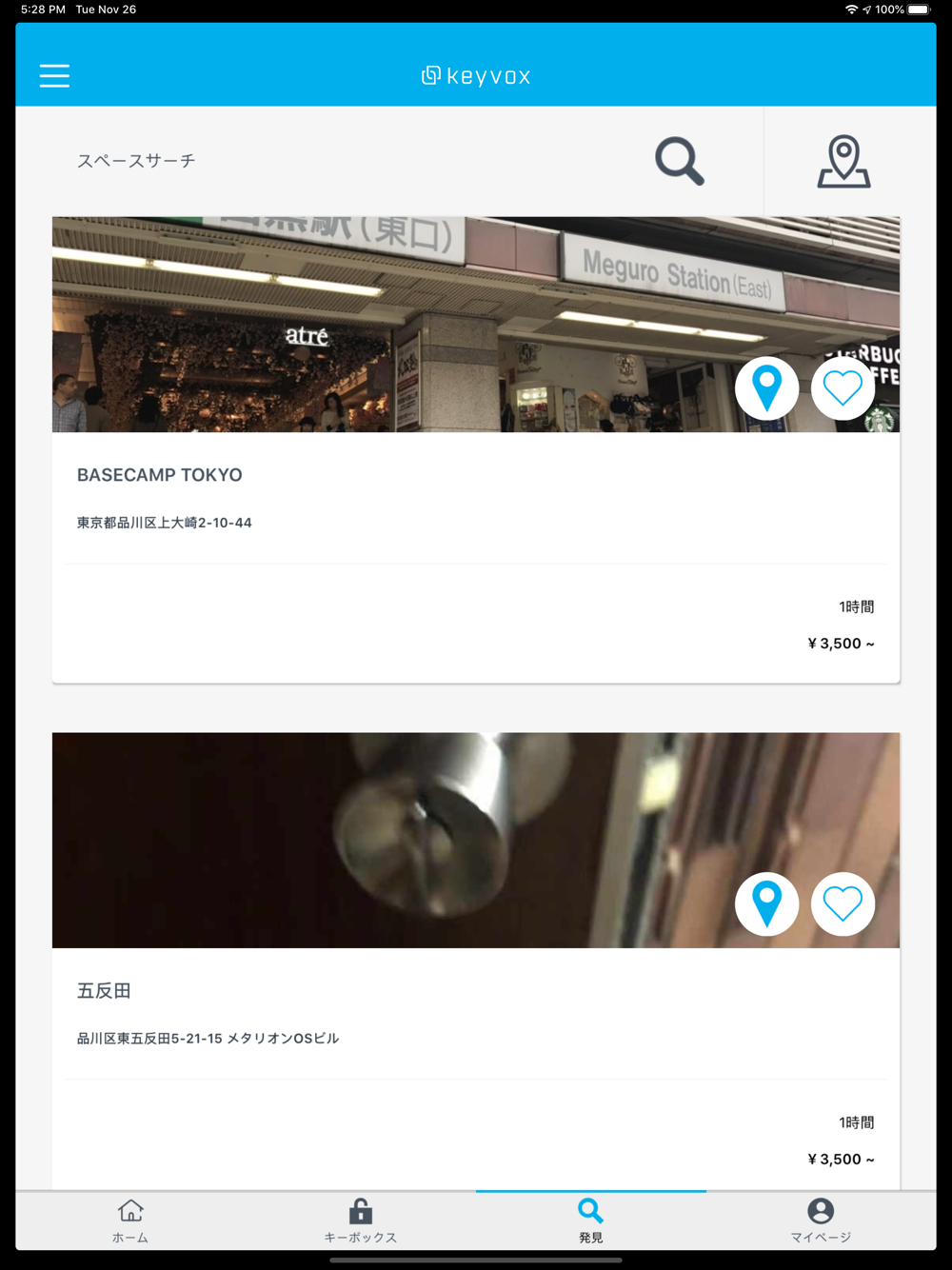 KEYVOXの連携ロックをご利用いただいている 世界中のホテル、レンタルスペース、レンタルオフィス、貸し会議室、個室ワーキングブース、コワーキングスペース当の検索、予約、支払い、スマートロックの操作を行うアプリです。