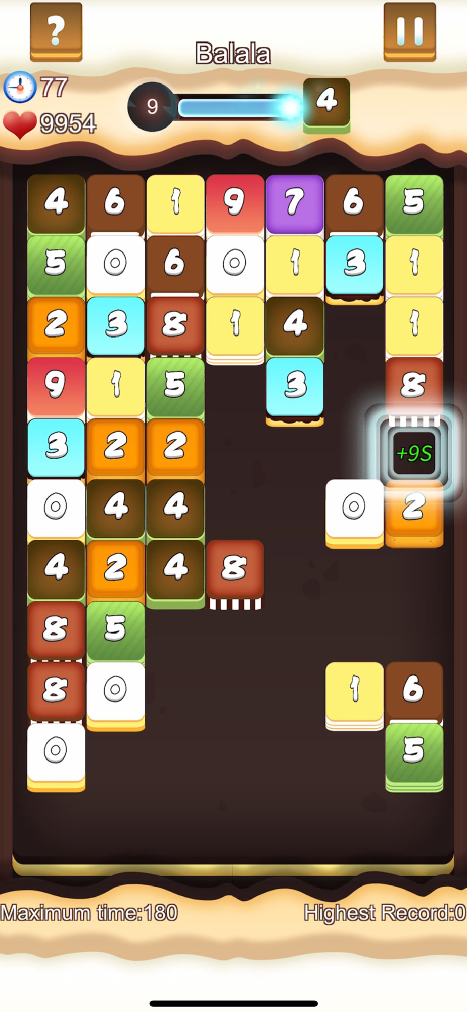 3: The elimination of two or more consecutive numbers is regarded as the success of the Solitaire. At this time, the Solitaire system is generated and the score increases. When the Solitaire system starts, the Solitaire system is given a cooling time of 5 seconds. After that, the time given for each Solitaire is less and less, at least Give 2 seconds.