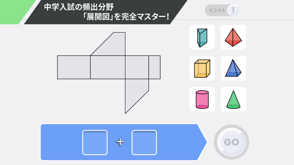 100万ユーザーの思考力育成アプリ「シンクシンク」を開発する「花まるラボ」のアプリ教材へのノウハウと、有名学習塾「花まる学習会」の中学受験指導の知見を凝縮し、「展開図から立体をイメージする」感覚を育みます。
