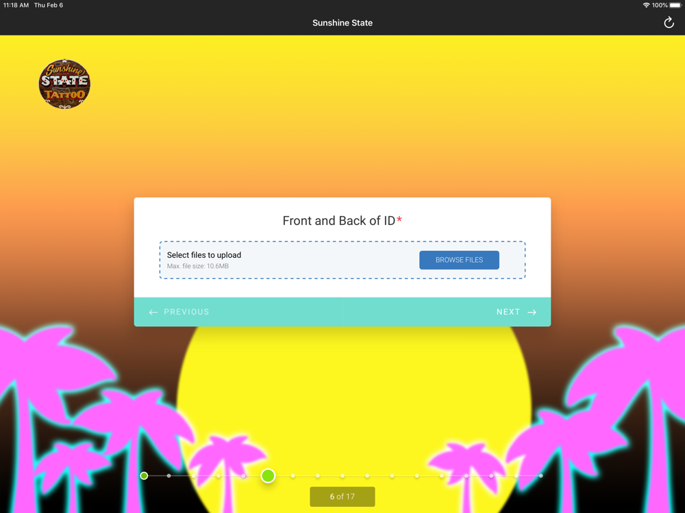 The Sunshine State Tattoo app allows you to securely submit a paperless tattoo waiver.