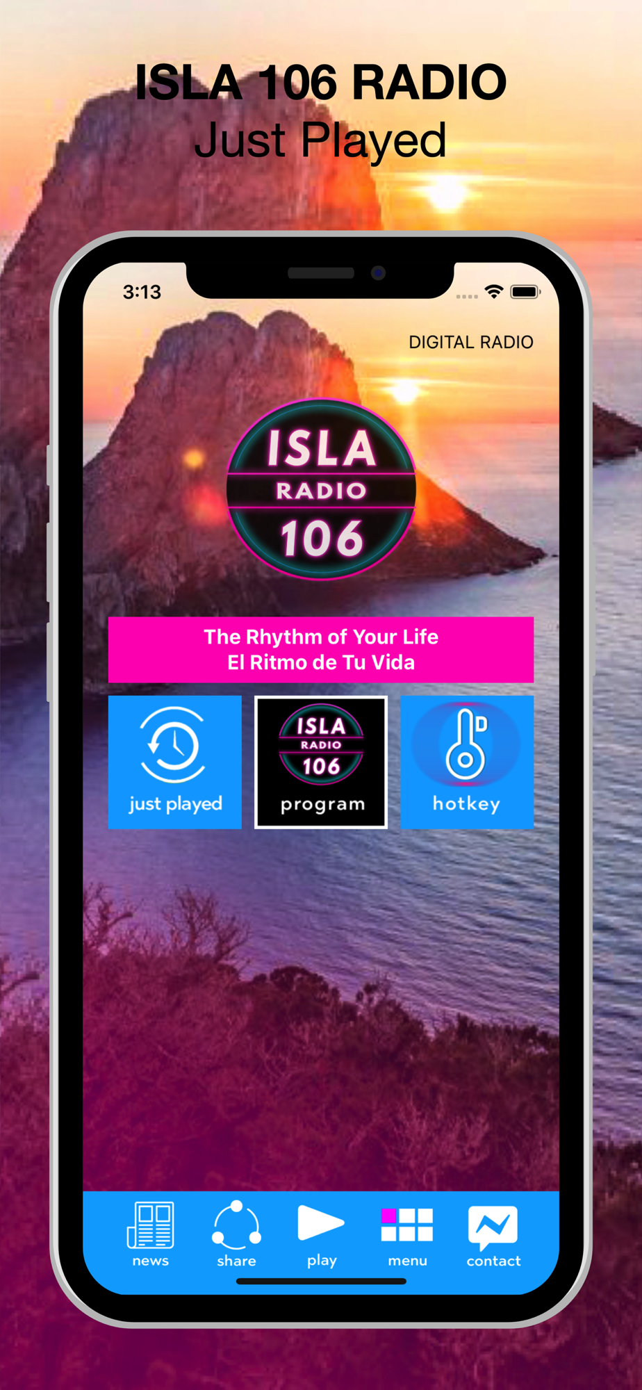 ISLA 106 RADIO is a radio channel on Ibiza & Mallorca that can be found on frequency 106.7 and 107.2. ISLA 106 RADIO is a 24/7 music channel from the white Island and Mallorca which broadcasts 80's and 90's music from 6:00 - 21:00 and the best house music 21:00 - 6:00!