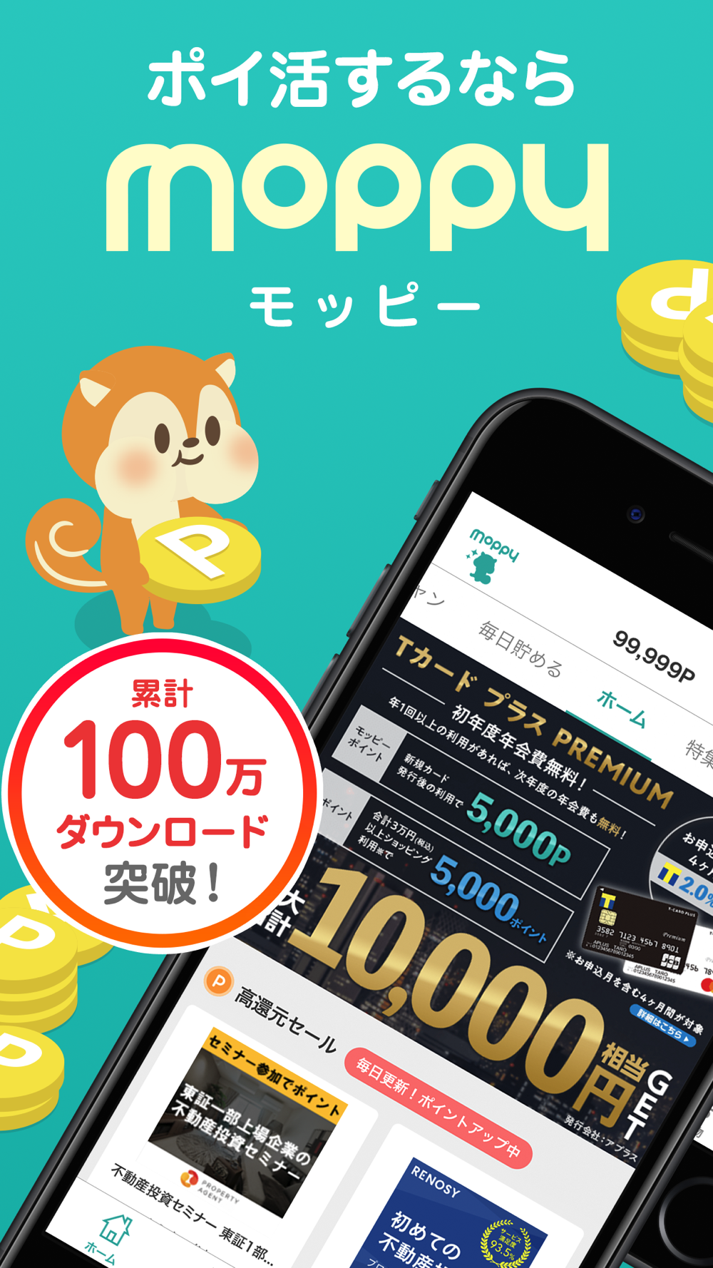 \モッピーアプリは累計100万インストールを突破!/